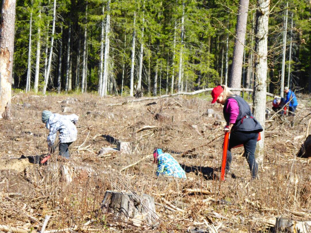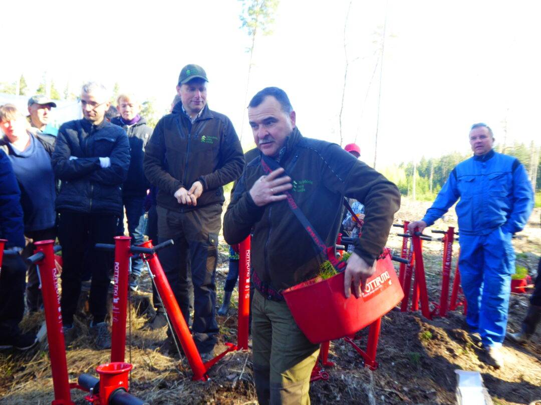 Obelių girininkijoje medeliai buvo sodinami iškirstame plote Vyžuonos miške. Girininkas Vidmantas Šarkambiškis papasakojo, kaip atrodys maždaug 2,6 ha po miškasodžio. Čia pasodinta 5900 vienerių metų konteinerinių pušelių, o sklypo pakraščiuose – 2700 eglaičių. Pirmą kartą panaudoti specialūs sodikliai, kuriais pušų sodinimas einasi greičiau. Eglutes sodinti teko naudojantis kastuvais. Mat šie sodinukai didesni. Planuojama šioje vietoje dar pasodinti 1200 juodalksnių sodinukų.
