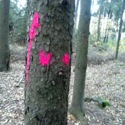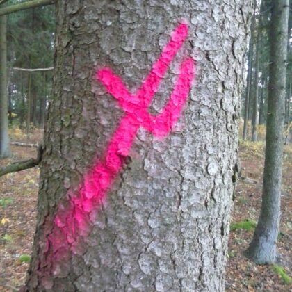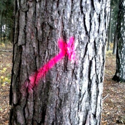 „Stebuklai darosi! Be mano žinios mano miške kažkas ženklina medžius. Kam? Gal naktį atvažiuos ir išpjaus. Juk dabar technika dirba tyliai: pati pjauna, pati pasikrauna. Ir gaudyk vėją laukuos“, – svarstė į keistą situaciją patekęs miško savininkas. Savo miške, užimančiame 1,75 ha, jis suskaičiavo per 20 medžių, paženklintų ryškiai raudonais dažais. Medžiai ženklinti ne iš eilės, daugiausia paženklintų – brandūs: pušys, eglės, beržai. Yra ženklų ir ant kelių jaunų medžių.