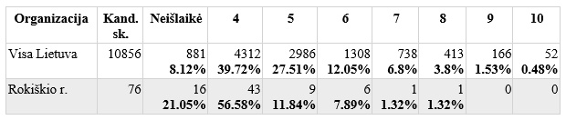 Mūsų rajone šį egzaminą laikė 76 mokiniai. Deja, net šešiolikai nepavyko surinkti minimalios taškų sumos, tad jie egzamino neišlaikė. Daugiau nei pusė laikiusiųjų gavo ketvertus. Nėra darbų, įvertintų devintukais ir dešimtukais. Palyginus rezultatus visoje Lietuvoje ir rajone matyti, kad gerokai atsiliekame nuo respublikos vidurkio.