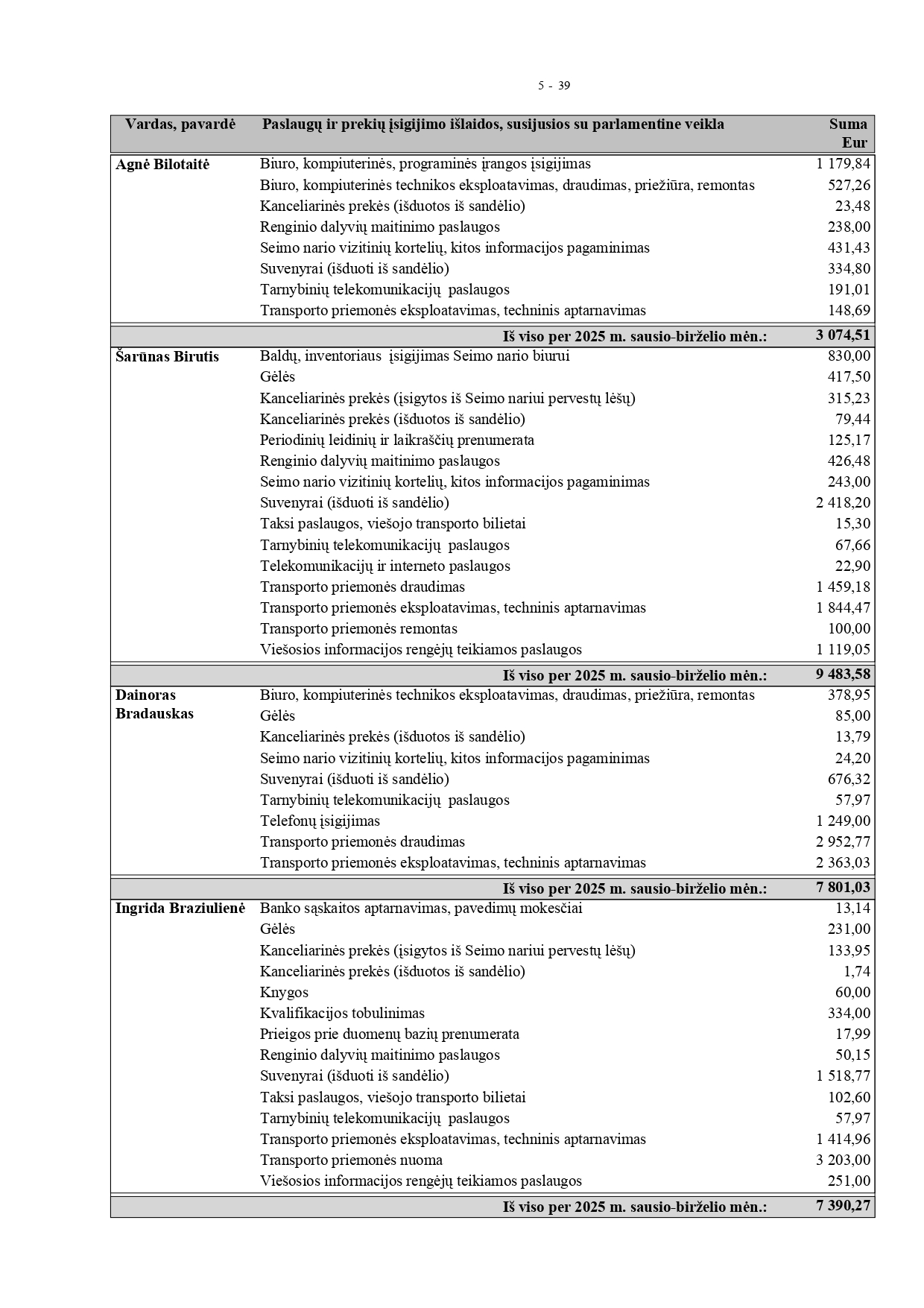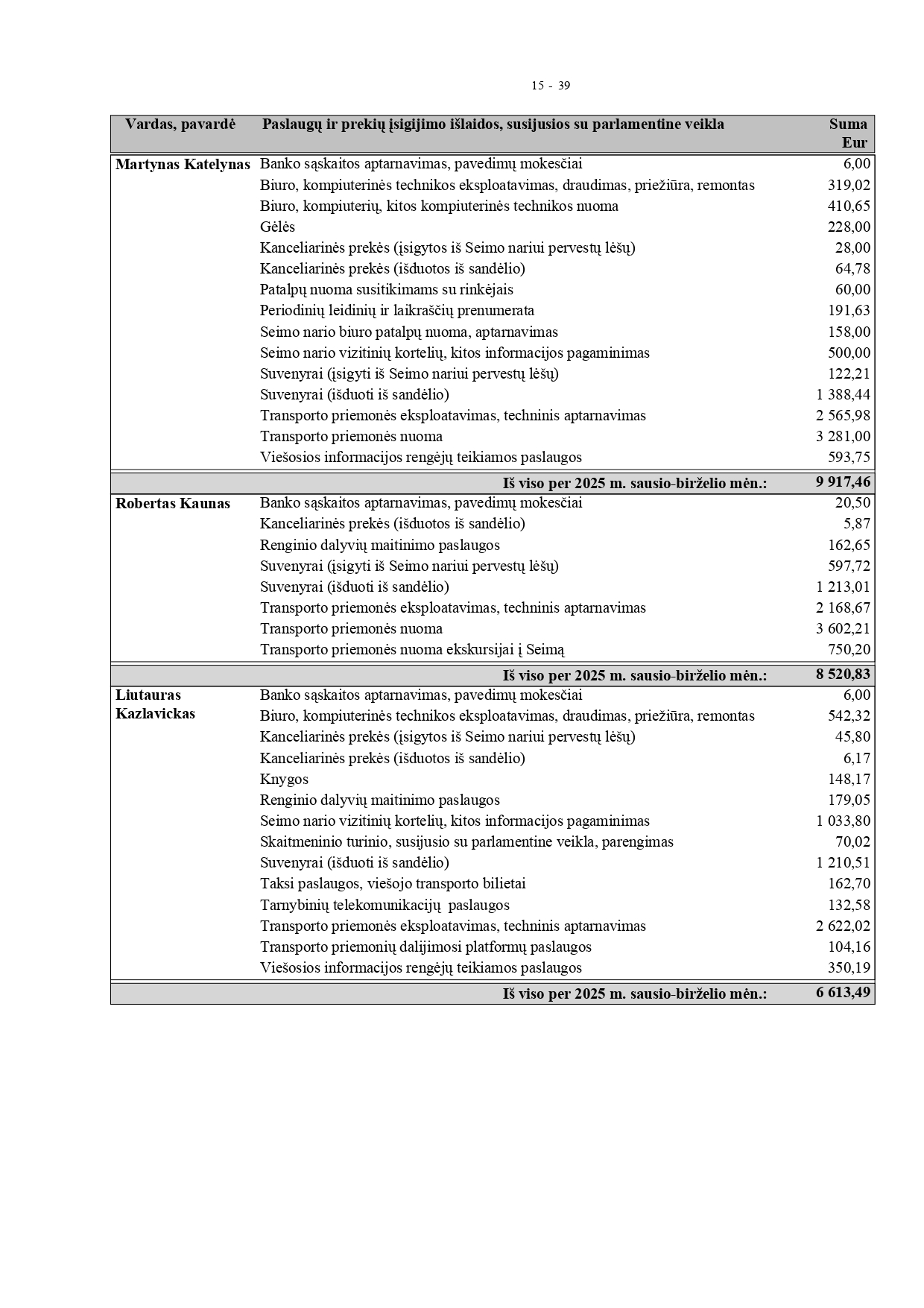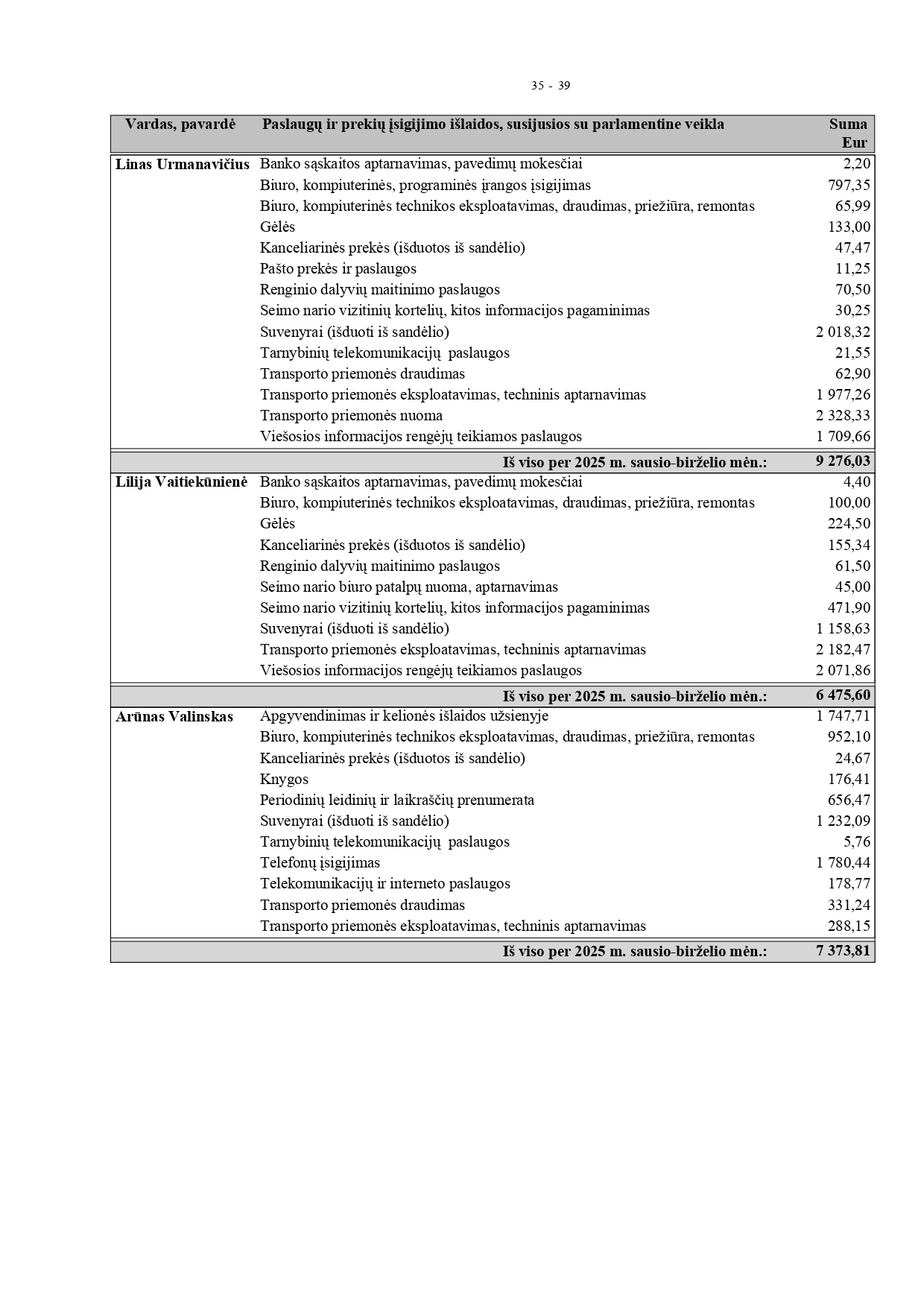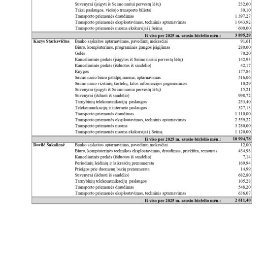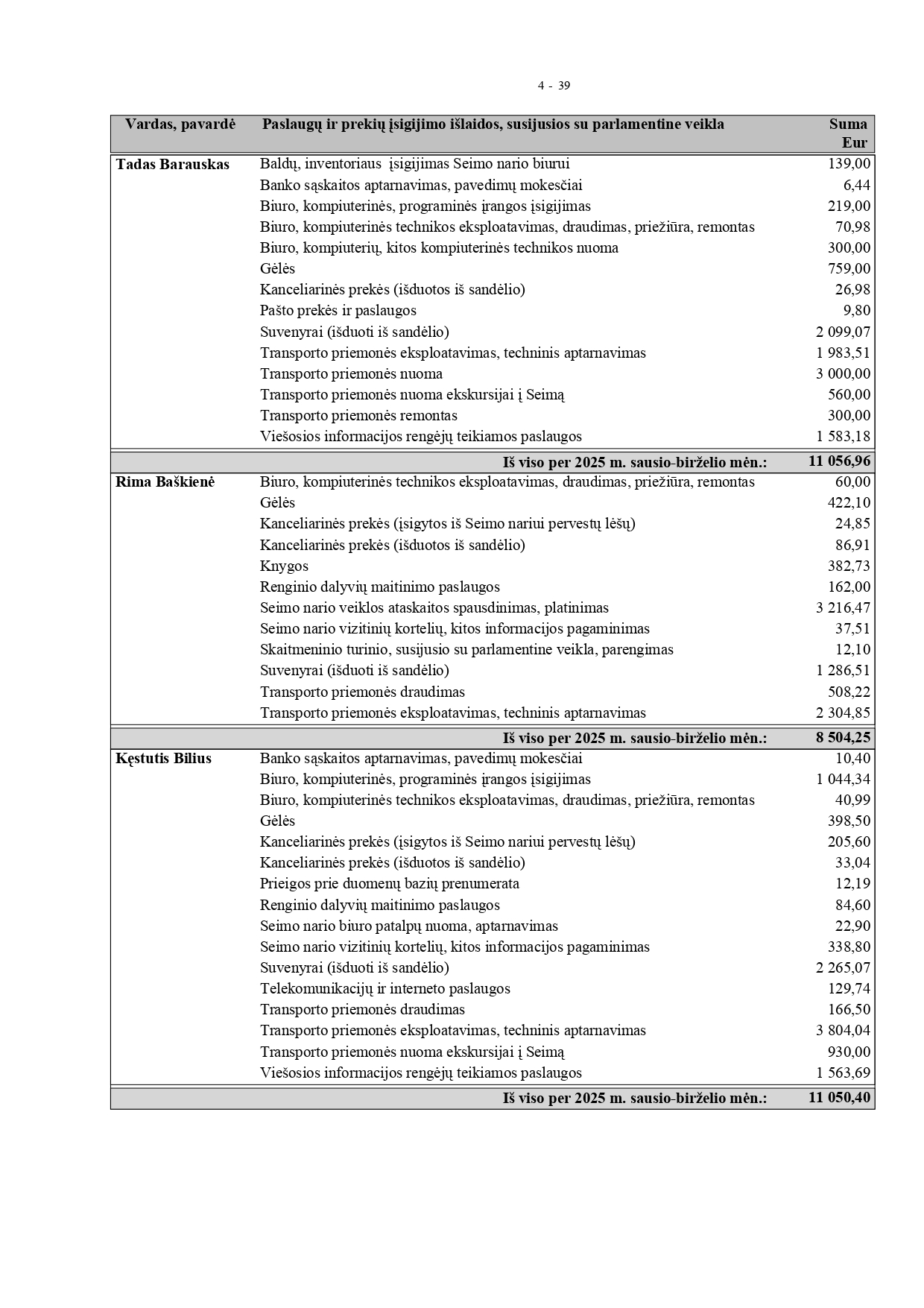 Jis akcentavo, kad yra aktyvus ir darbštus, todėl tų išlaidų susidaro, be to, priima Seime daug ekskursijų iš abiejų rajonų, tai irgi šiek tiek kainuoja, nes kai kuriems ir keliones apmoka. „Visos išlaidos pagrįstos. Jei dar įdomu, tai apie 3000 eurų išleidau ir asmeninių lėšų. Įvairioms paramoms, miestelių ir kaimų renginiams“, – komentavo T. Barauskas.