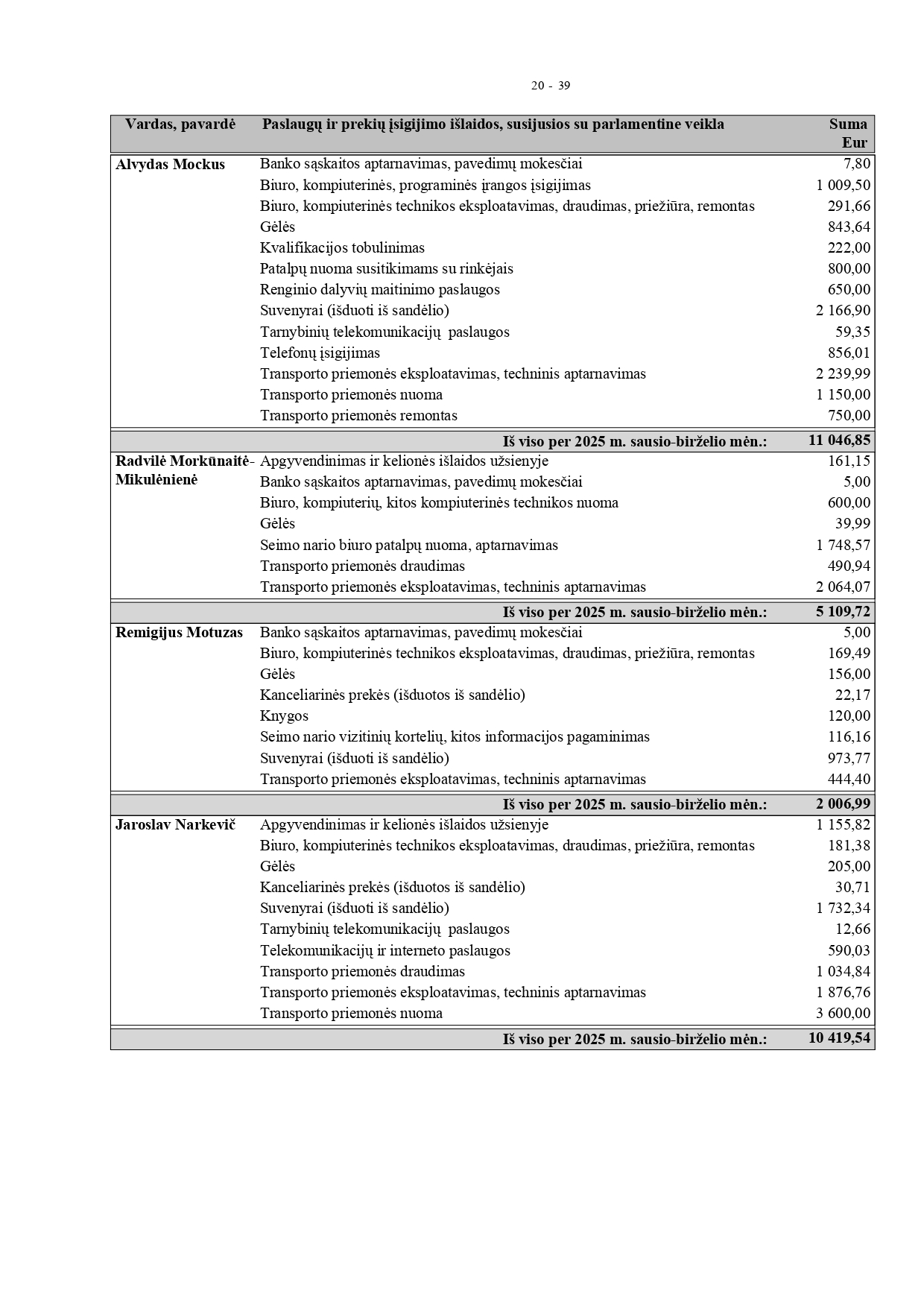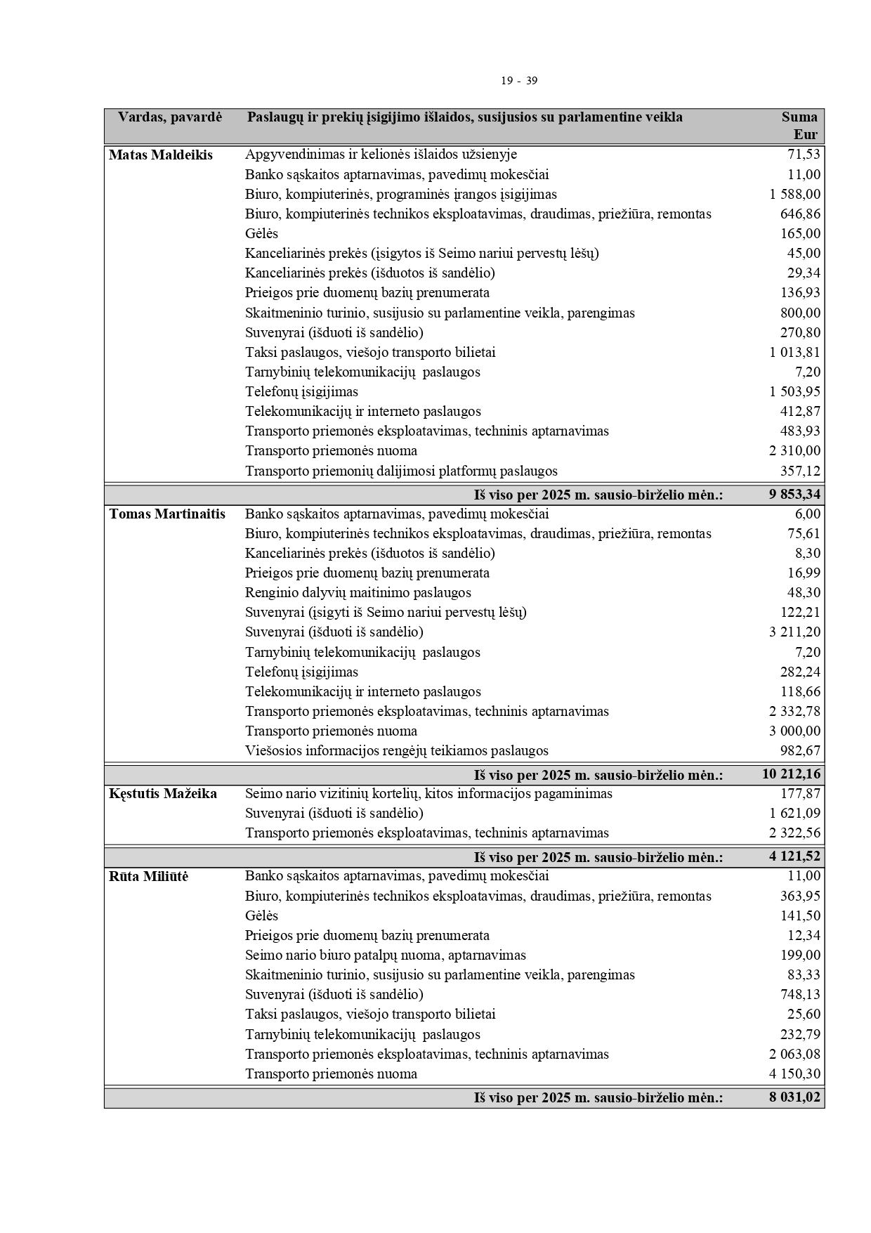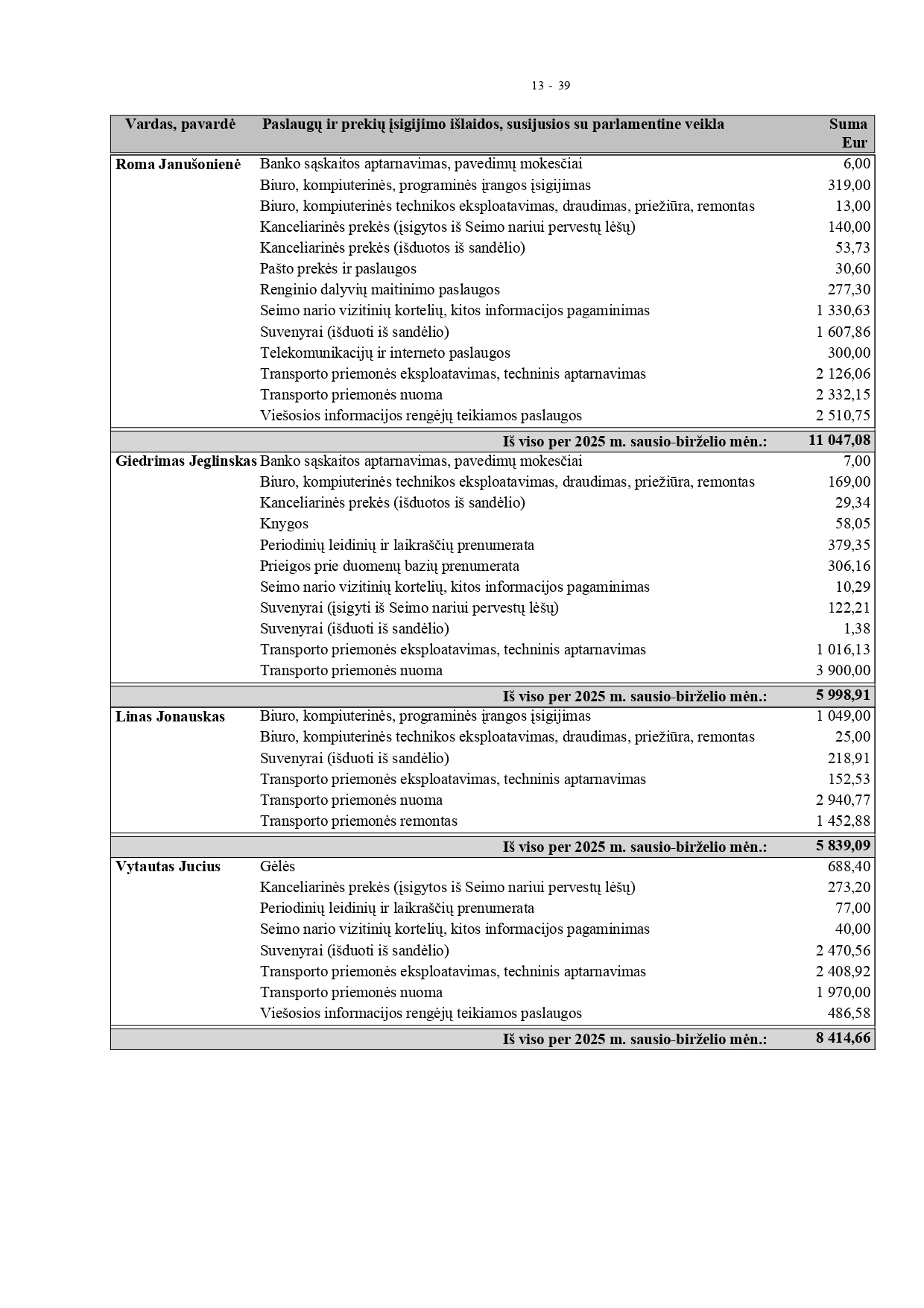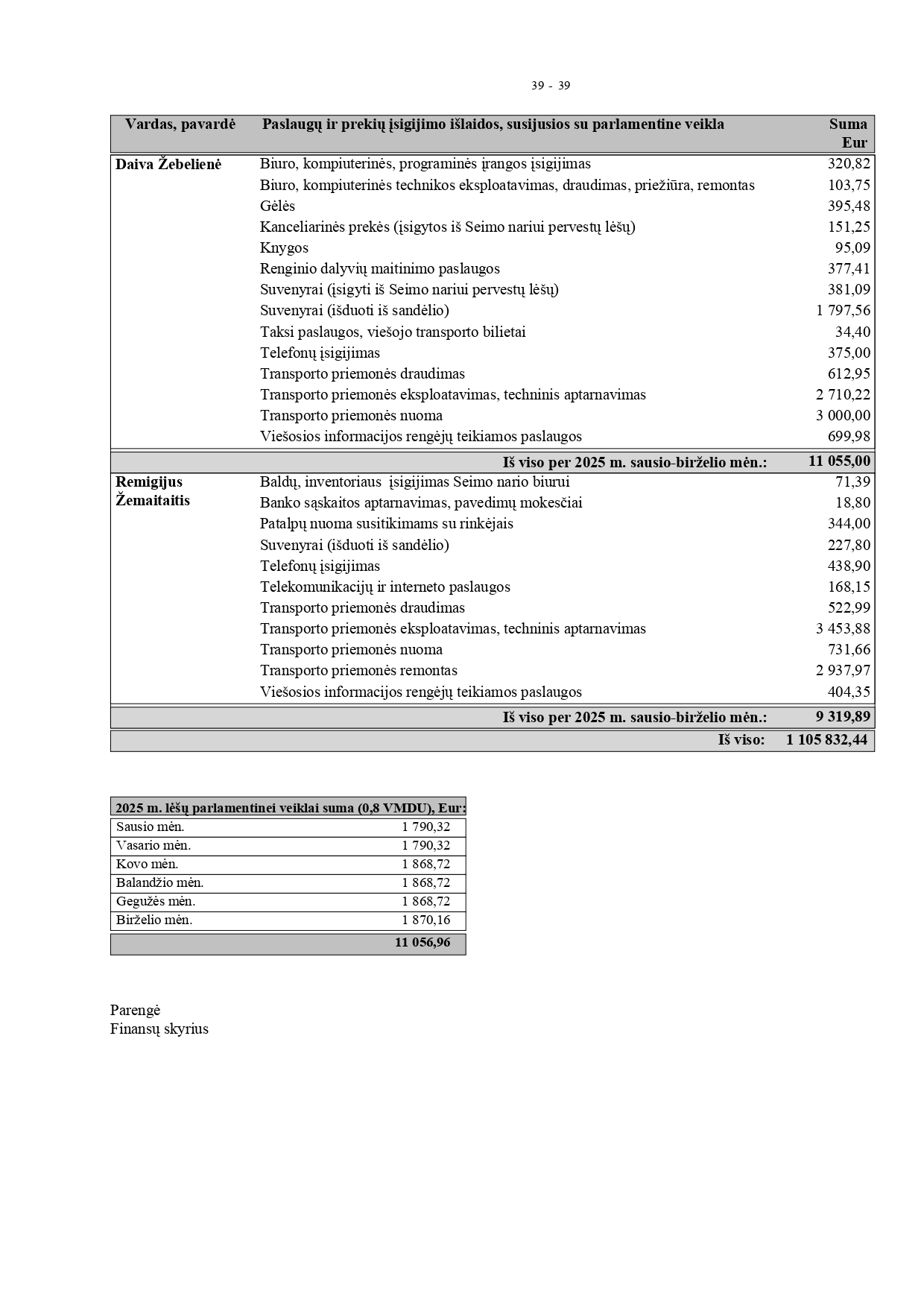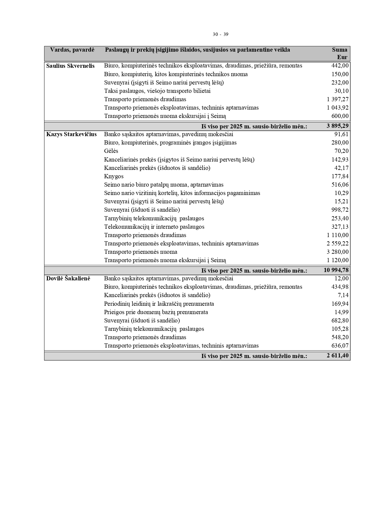 Jis akcentavo, kad yra aktyvus ir darbštus, todėl tų išlaidų susidaro, be to, priima Seime daug ekskursijų iš abiejų rajonų, tai irgi šiek tiek kainuoja, nes kai kuriems ir keliones apmoka. „Visos išlaidos pagrįstos. Jei dar įdomu, tai apie 3000 eurų išleidau ir asmeninių lėšų. Įvairioms paramoms, miestelių ir kaimų renginiams“, – komentavo T. Barauskas.