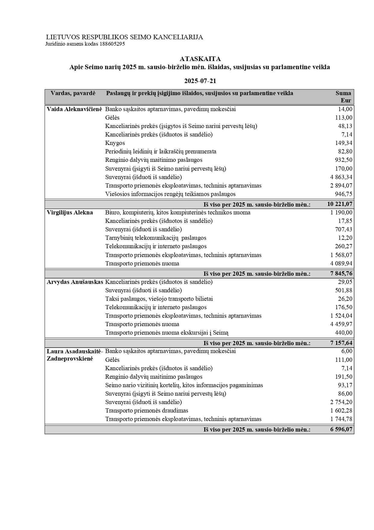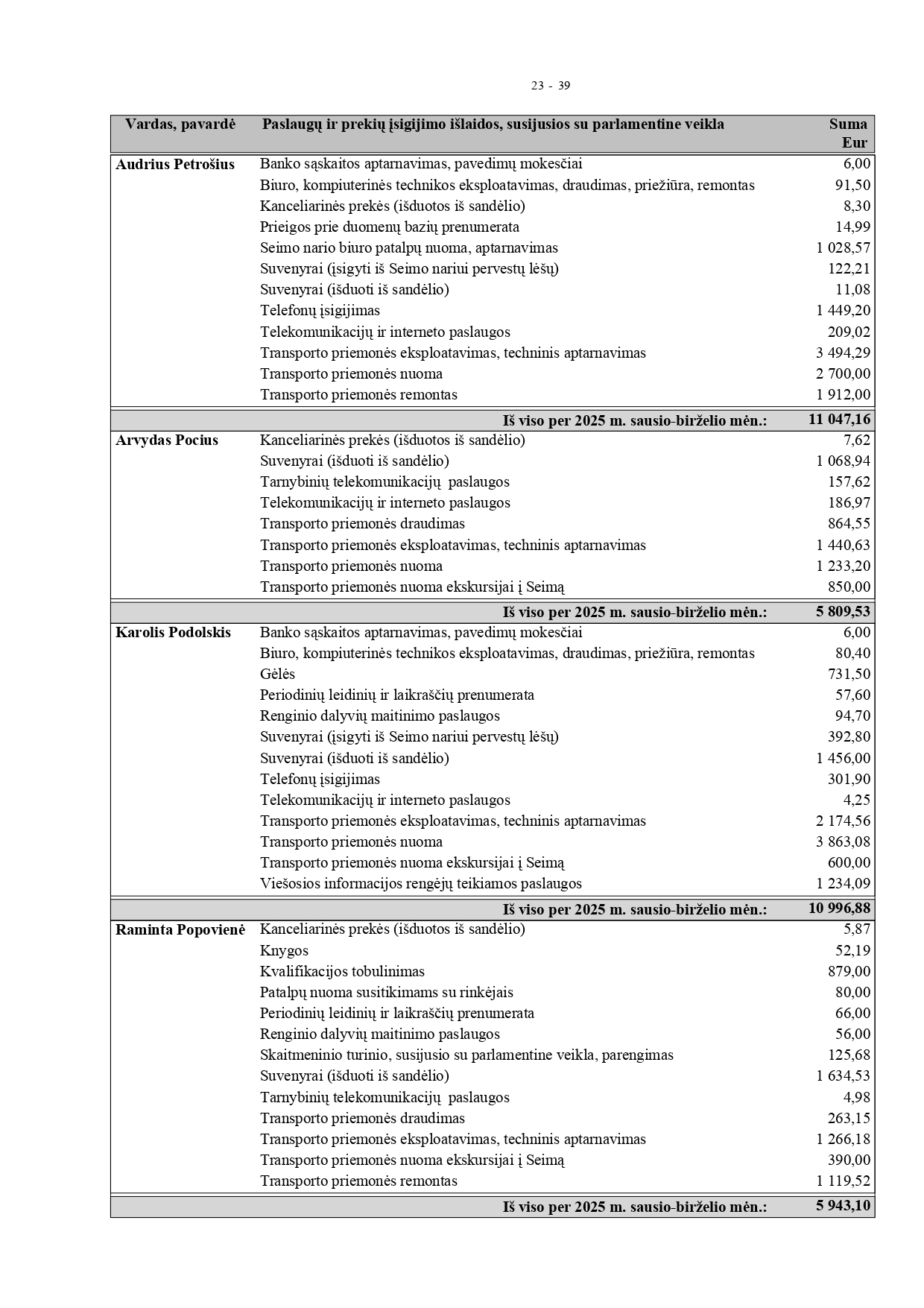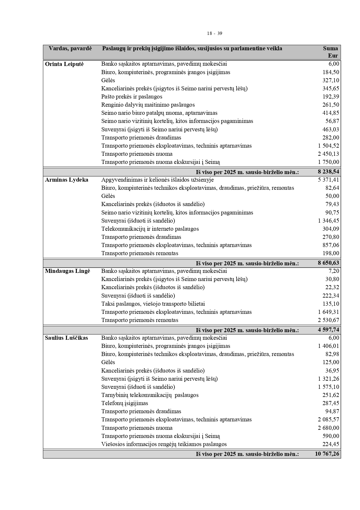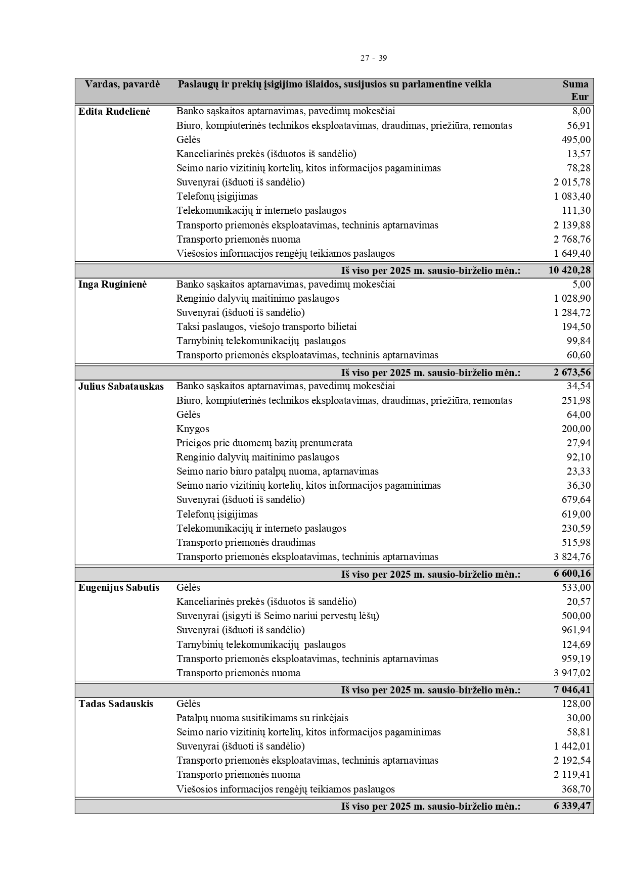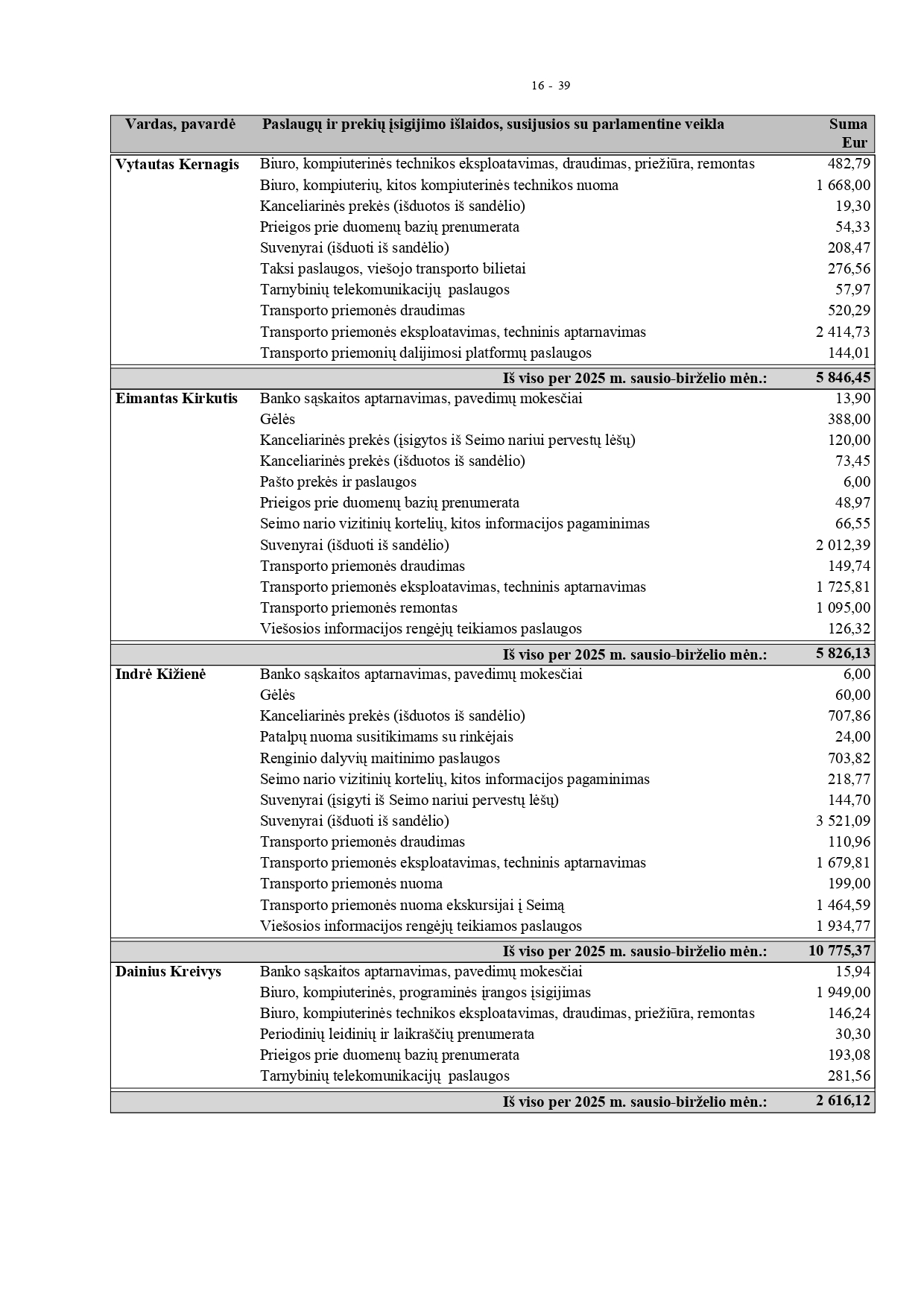 Jis akcentavo, kad yra aktyvus ir darbštus, todėl tų išlaidų susidaro, be to, priima Seime daug ekskursijų iš abiejų rajonų, tai irgi šiek tiek kainuoja, nes kai kuriems ir keliones apmoka. „Visos išlaidos pagrįstos. Jei dar įdomu, tai apie 3000 eurų išleidau ir asmeninių lėšų. Įvairioms paramoms, miestelių ir kaimų renginiams“, – komentavo T. Barauskas.