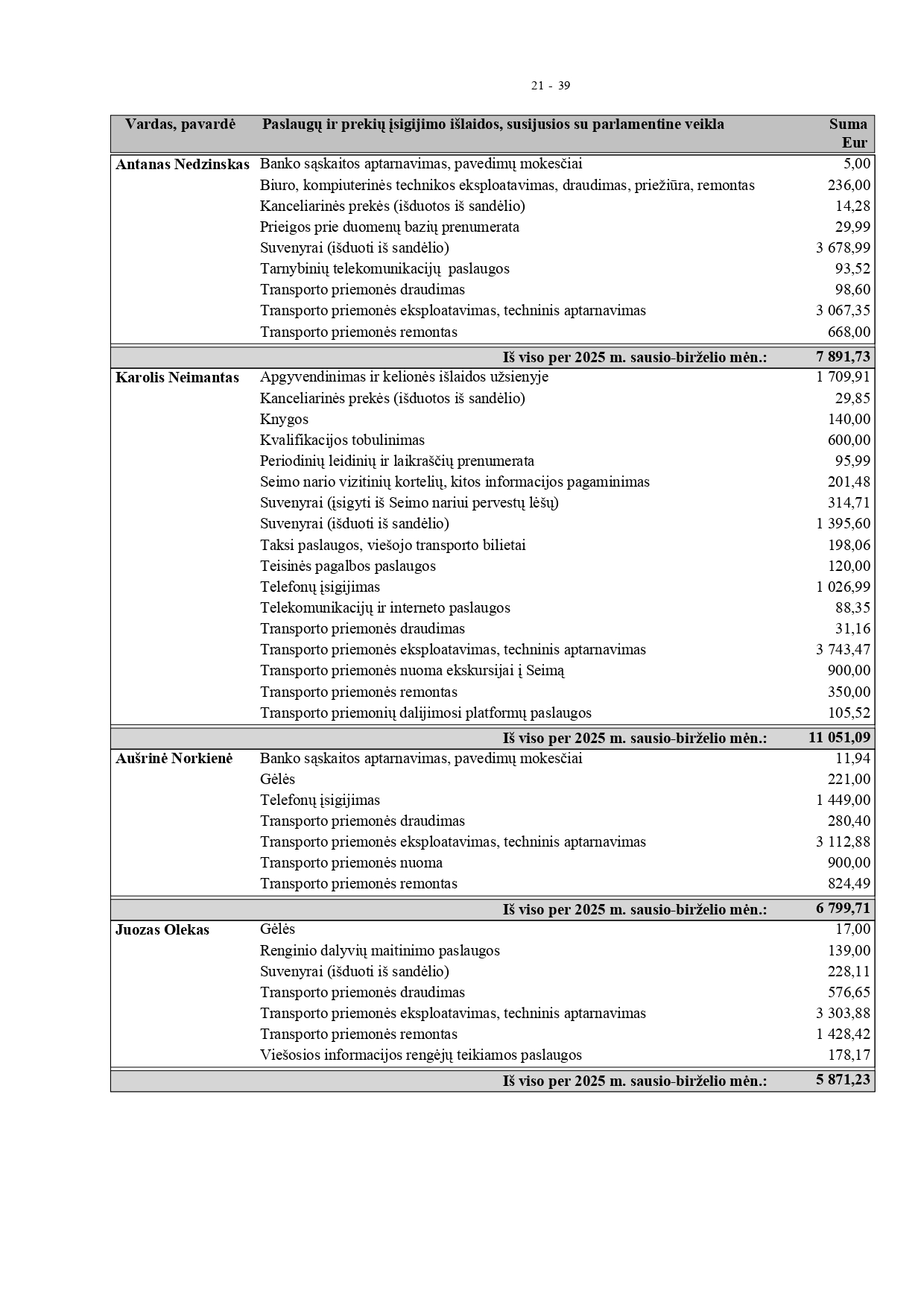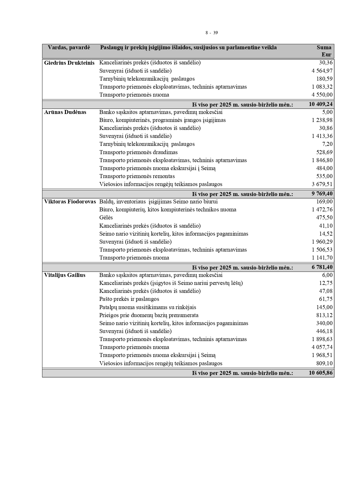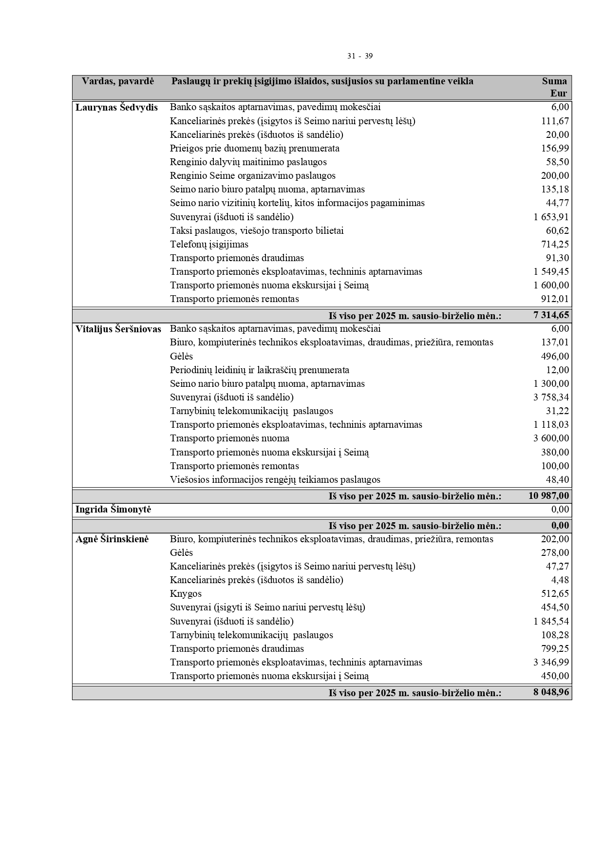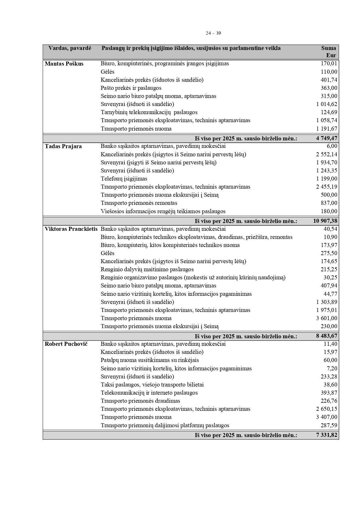 Kaip skelbia 15min.lt, tarp Seimo išlaidūnų vyrauja valdantieji socialdemokratai ir „aušriečiai“, o dažniausios išlaidos – automobilių nuomai, eksploatacijai ir techniniam aptarnavimui. Politikai taip pat nevengė pratuštinti Seimo sandėlio.