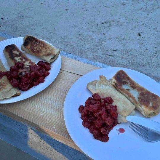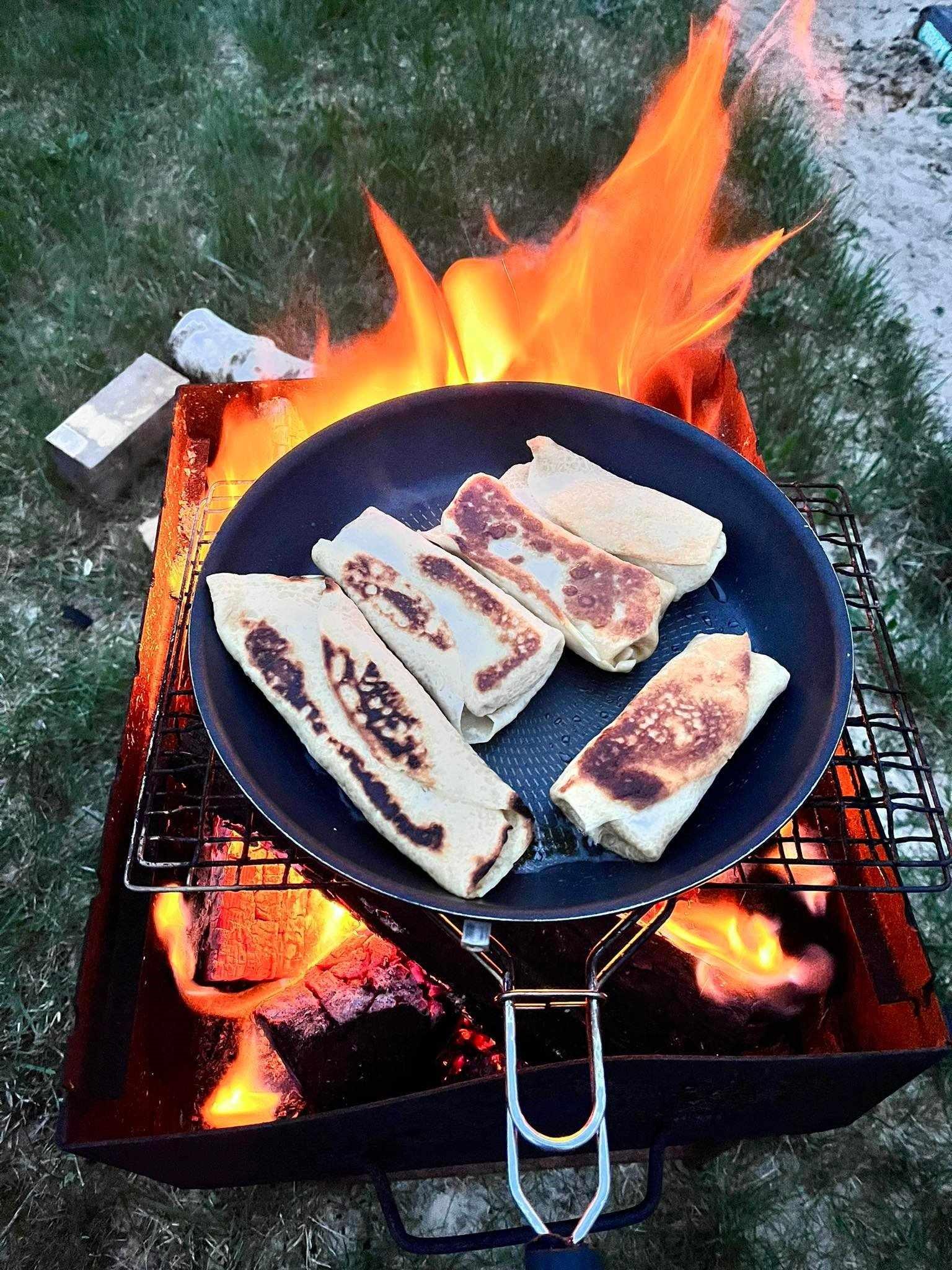 Sandros ir Agniaus lietiniai blynai su bananais – ant laužo liepsnos