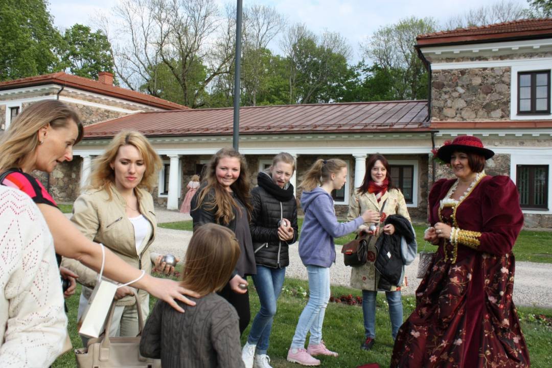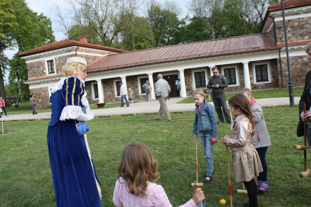 Muziejininkė Jolita Jurevičienė mokė visus norinčiuosius žaisti petankę. O šalia, dvaro vejoje, patariami ir pamokomi muziejininkės Ingridos Kujelės, ir vaikai, ir suaugusieji mokėsi žaisti kroketą.