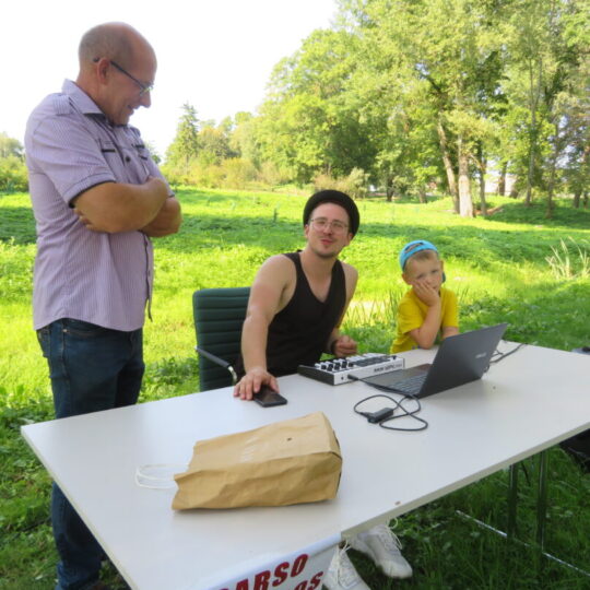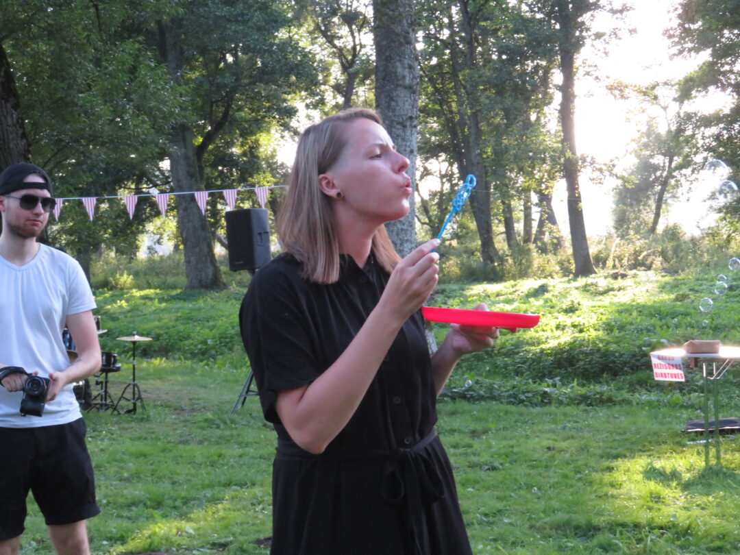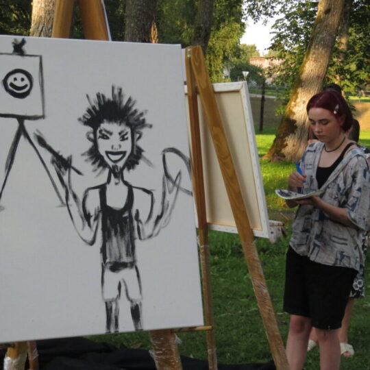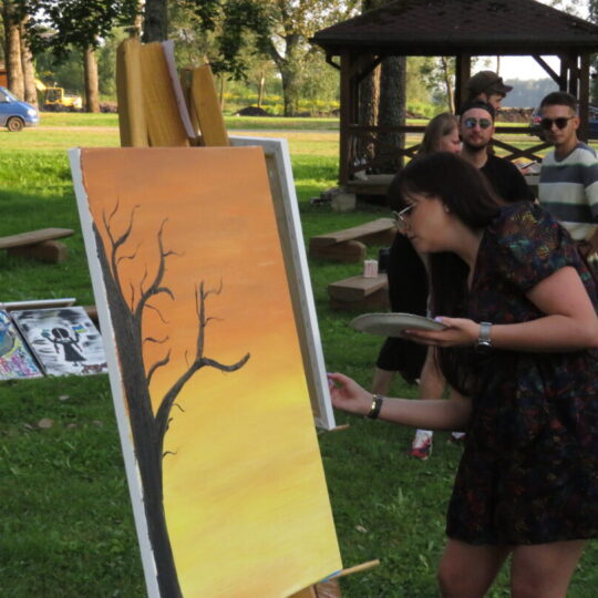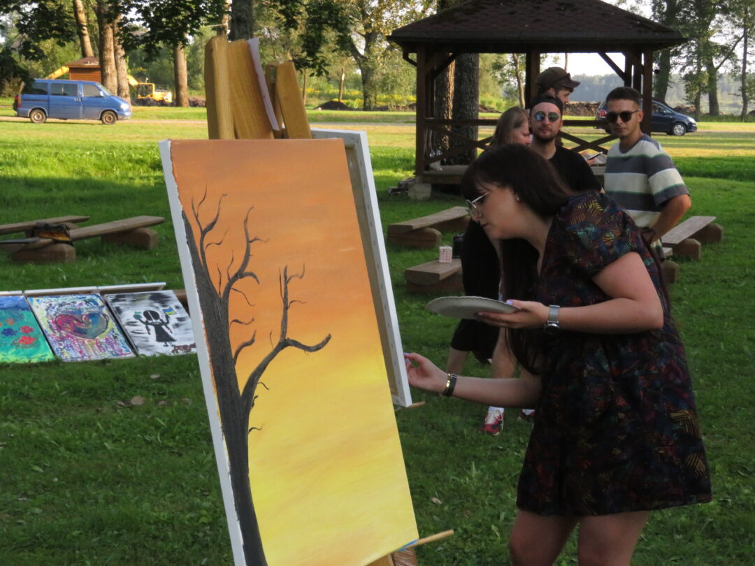 Parke veikė kūrybinės dirbtuvės, publika varžėsi „Meno kovose“, LRT žurnalistė Arneta Matuzevičiūtė kalbino obelietį Romą Kundelį, o saulei leidžiantis po parką pasklido gitarų ir mušamųjų instrumentų ritmai.