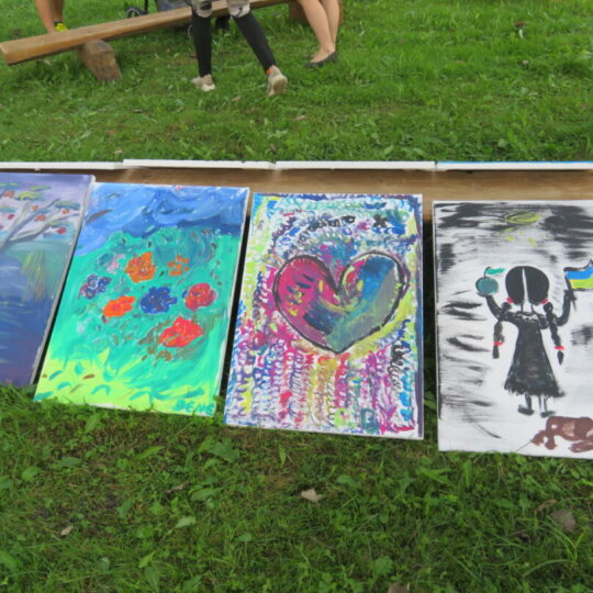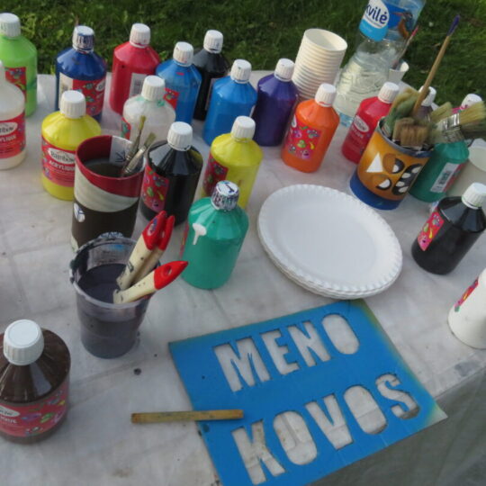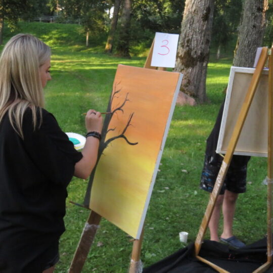Tarsi tęsiant sporto temą, surengtos „Meno kovos“, kurios turėjo savus pusfinalius ir finalą. Kovų dalyviai stojo prie molbertų ir akrilo dažais tapė paveikslus. Geriausiai pasirodę pusfinaliuose, buvo atrinkti į finalą, kuriame vėl varžėsi kurdami naujus vaizdus. Visuose etapuose nugalėtojus lėmė tik žiūrovų balsai. Tapyba vyko azartiškai, nes buvo nustatytas laiko limitas – vienam paveikslui nutapyti skirta 20 minučių. Nugalėjo Lina Nemeikšytė iš Kriaunų. Mergina mokosi Vilniuje, Nacionalinėje M. K. Čiurlionio menų mokykloje. Ją, atostogaujančią Kriaunose, dalyvauti „Menų kovose“ paskatino mama, perskaičiusi apie renginį spaudoje. Lina prisipažino, jog iš pradžių nedrąsiai jautėsi tarp nepažįstamų žmonių, tačiau iš veido matėsi, jog laimėtas prizas ją labai paskatino. Geriausi paveikslai bus eksponuojami bendruomenės namuose per „Obelinę“.