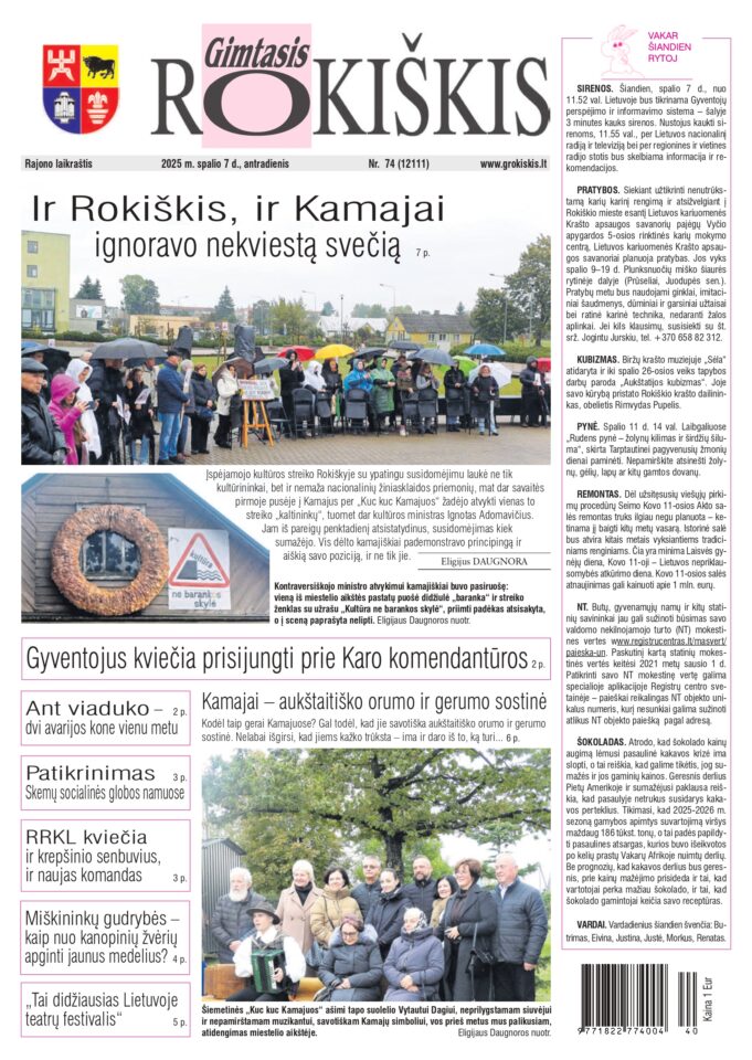Visos rajono naujienos, renginių anonsai ir skelbimai – jau antradienio „Gimtajame Rokiškyje“!