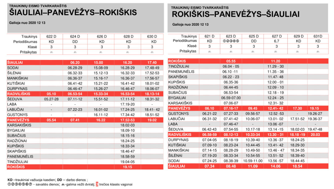 Konkrečius tvarkaraščių pokyčius keleiviai gali rasti internetinėje svetainėje www.traukiniobilietas.lt arba sužinoti paskambinę informacijos centro telefonu +370 700 55 111.