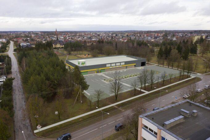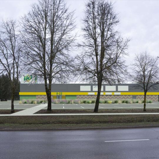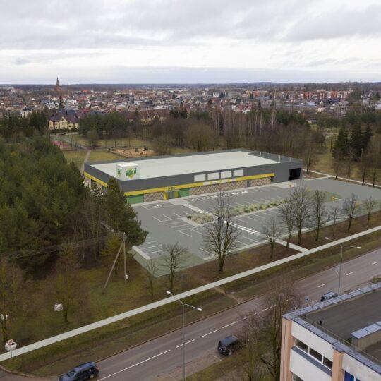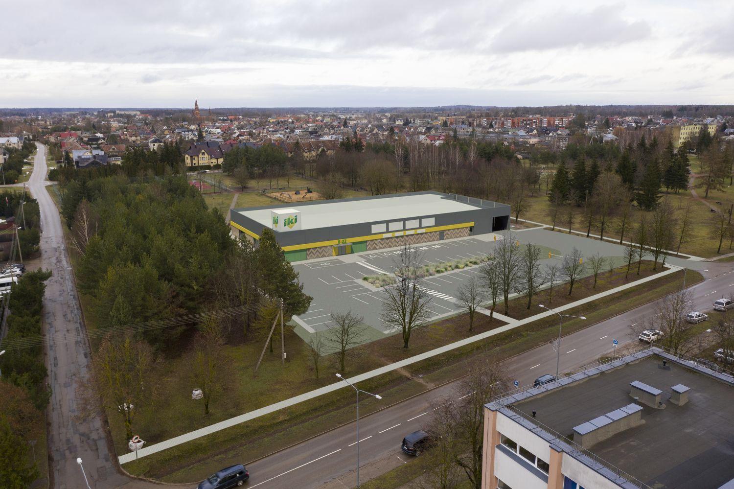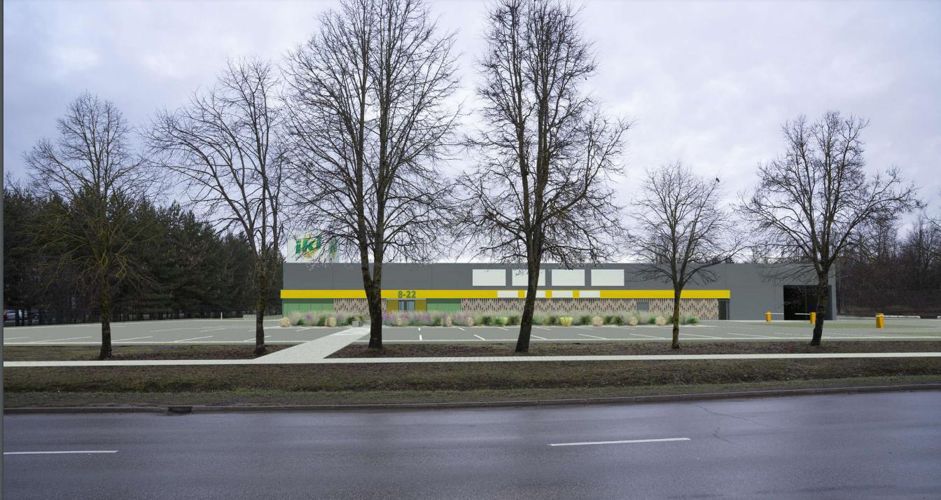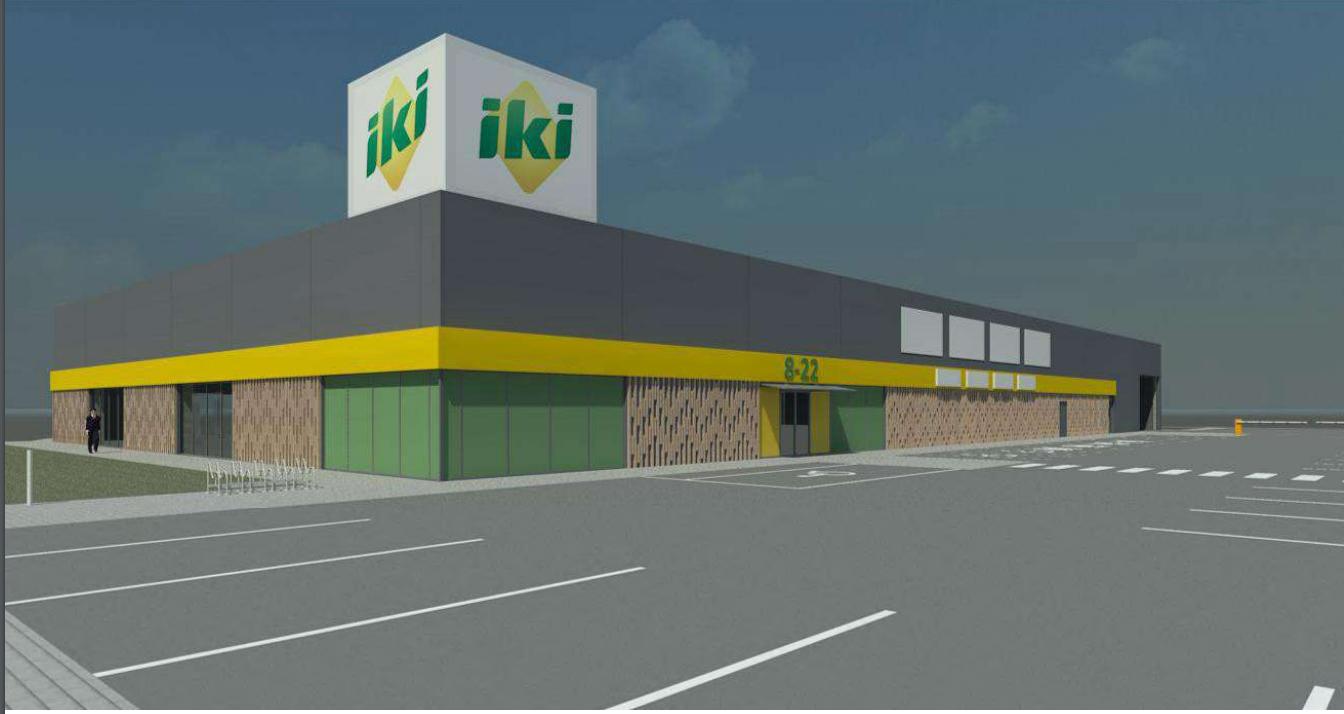 Skelbiama naujojo IKI prekybos centro Rokiškyje, Taikos g. 2A, vizualizacija. Tai bus jau trečioji šio tinklo parduotuvė mieste. Bendras pastato plotos turėtų siekti iki 2300 kv. metrų, o šalia įrengta ne mažiau nei 58 vietų automobilių aikštelė.