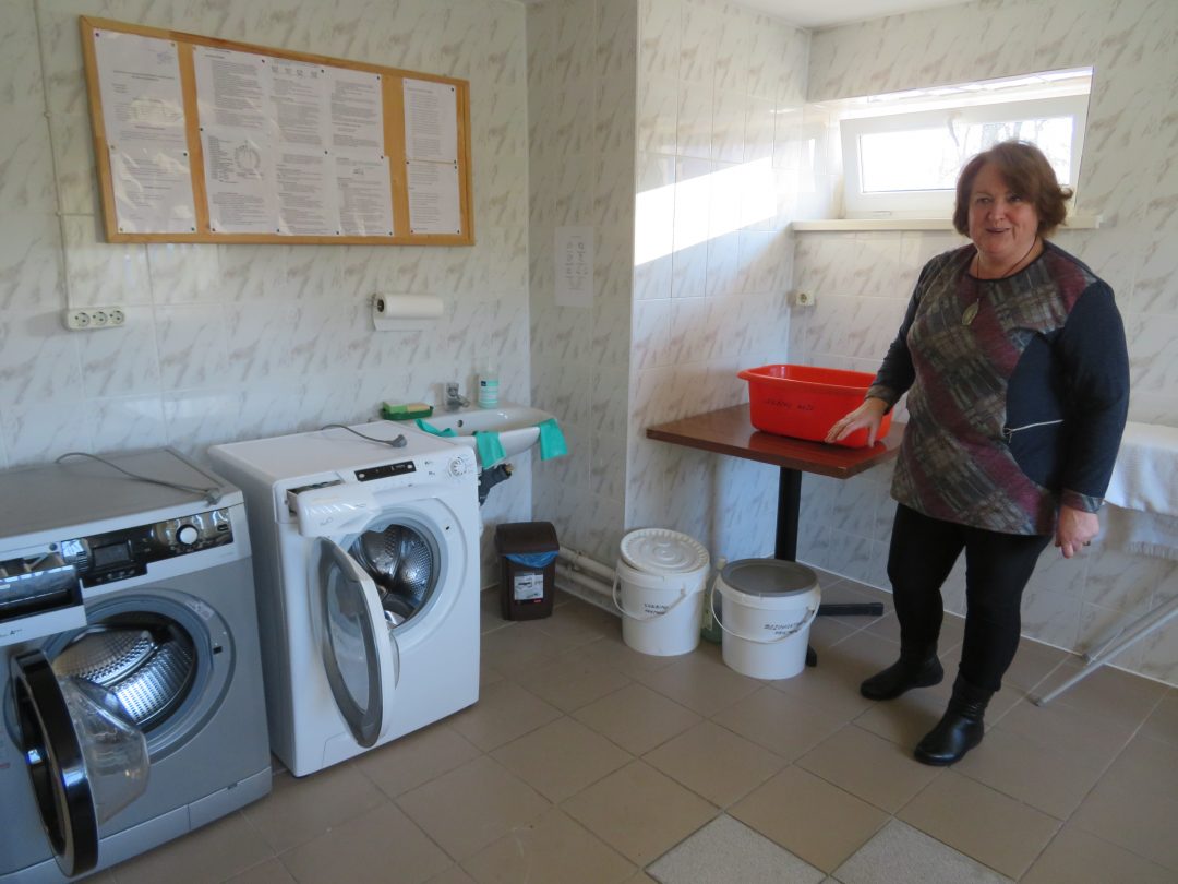 Vedžiodami po jaukias patalpas, draugijos nariai pasakojo ir apie čia teikiamas mokamas paslaugas: veikia savitarnos skalbykla ir dušas. Ar tai populiarios paslaugos, juk ir viena, ir kita kainuoja po 2 Eur? „Šiais metais skalbėme 40 kartų. Dušas mažiau populiarus“, – pasakojo Gailutė Bražiūnienė.