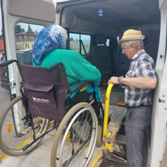 „Tiesiog neįtikėtina, kad šiais laikais tokie dalykai dar vyksta. Atvežiau neįgalų, sėdintį vežimėlyje žmogų į banką paslaugos – išsiimti naujos kortelės. Ką gi matom – jokio įvažiavimo neįgaliesiems, tik laiptai. Kaip man vienam vežimėlį su nemažai sveriančiu žmogumį laiptais užkelti? Prašėm, kad į lauką išeitų banko darbuotoja ir sutvarkytų dokumentus, padėtų parašą, tačiau ji atsisakė tai padaryti, nes banke dirbo viena. Nežmoniška. Bankas ne šiaip kokia įmonėlė, lėšų tikrai atrastų įrengti įvažiavimą neįgaliesiems“, – piktinosi ir stebėjosi A. Veikšys. Paklaustas, ar pavyko susitvarkyti banke reikalus ir kokiu būdu, A. Veikšys sakė, kad tik su inkasatoriaus pagalba. „Laimei, kad tuo metu banke buvo inkasatorius, tai mes dviese su juo neįgalųjį įkėlėme laiptais. Kitu atveju būčiau turėjęs gaudyti praeivius ir prašyti pagalbos“, – sakė A. Veikšys, neįgalų žmogų atvežęs specialiai pritaikytu Rokiškio neįgaliųjų draugijos autobusiuku – čia neįgaliųjų vežimėliams yra įrengtas specialus nuleidžiamasis įvažiavimas.