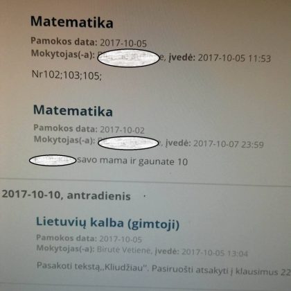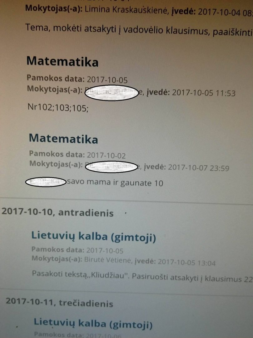 Prisijungęs prie „Tamo“ dienyno J. Tūbelio progimnazijos mokinės tėvas vietoje matematikos mokytojos pavardės rado šokiruojantį užrašą, jo vaikui prirašytų „kuolų“, o pastabos vietoje – necenzūrinį tekstą.