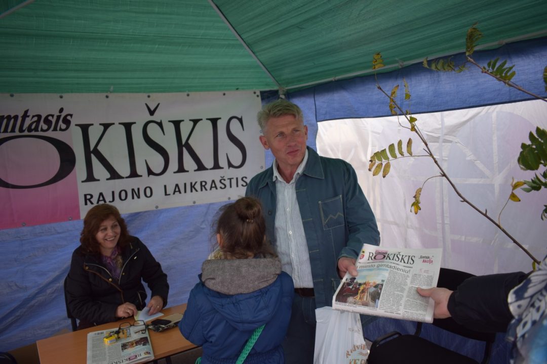 Šeštadienį nuo pat ryto ėmė šurmuliuoti Nepriklausomybės aikštė. „Gimtojo Rokiškio“ kiemelyje būriavosi skaitytojai, smalsuoliai, aktyvūs rokiškėnai ir į svečius atvykę kraštiečiai: kas čia pat vartė naujausią šeštadienio numerį, ieškodami šviežių naujienų, kas teiravosi miesto šventės renginių ir, gavę gimtadienio žemėlapį, ėmėsi jį iškart nagrinėti, kas teiravosi prenumeratos akcijos sąlygų ir iškart traukė piniginę, džiaugdamiesi galimybe čia pat užsiprenumeruoti „Gimtąjį…“ metams gerokai pigiau.
