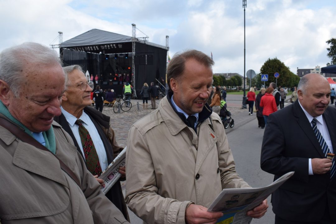 Į visą šį šurmulį įsiliejo kraštiečiai – Vilniaus klubo „Pragiedruliai“ nariai, sugrįžę į gimtinę ne tik pasidžiaugti miesto gimtadieniu, bet ir pasveikinti kolegos – klubo vadovui Algiui Naručiui bus įteiktos Krašto garbės piliečio regalijos. Taigi kraštiečiai su Arvydu Bagdonu ir Donatu Smalinsku priešakyje nuo pat šeštadienio ryto peržvelgė rajono naujienas „Gimtajame Rokiškyje“. Beje, jie jau daugelį metų – ištikimi „Gimtojo…“ skaitytojai ir bičiuliai.
