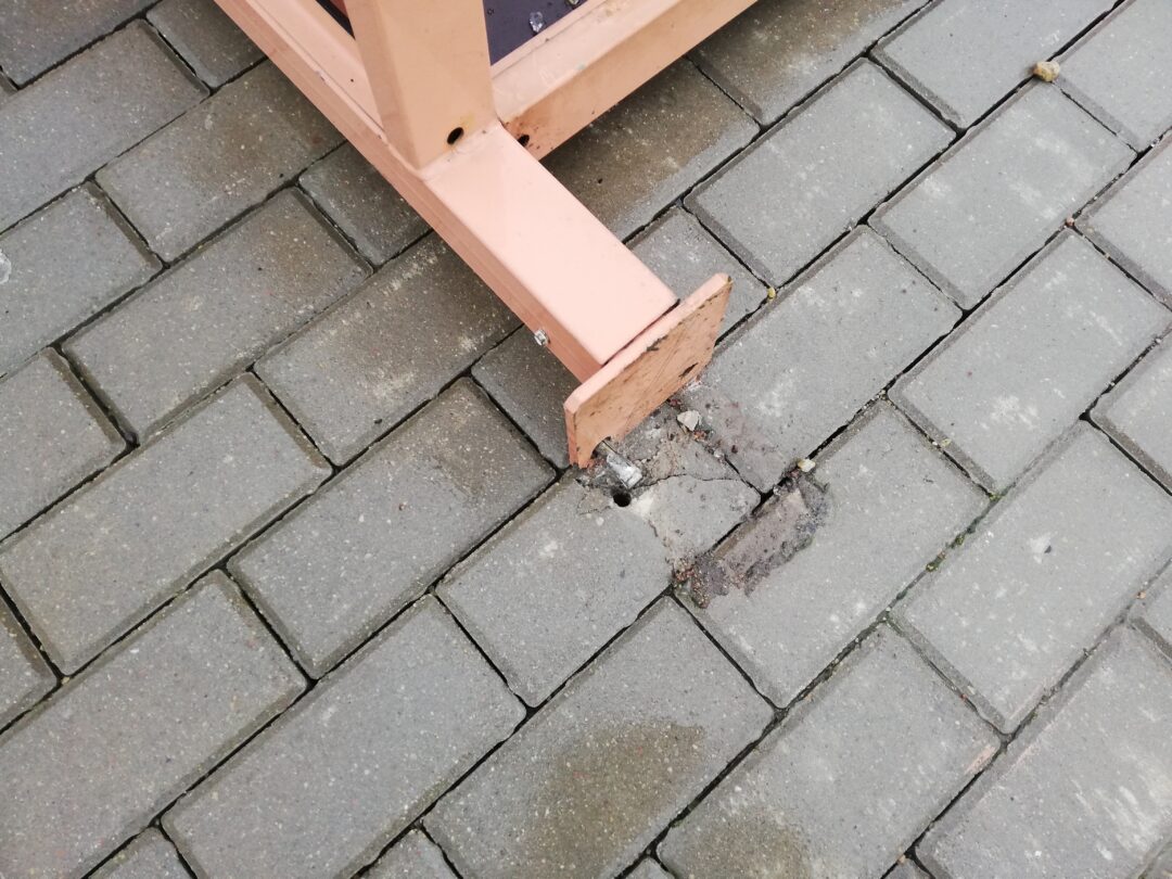 tvirtinimo cia realiai nera palyginus su visos konstrukcijos dydziu, net strypai nera ileisti gilyn i zeme.