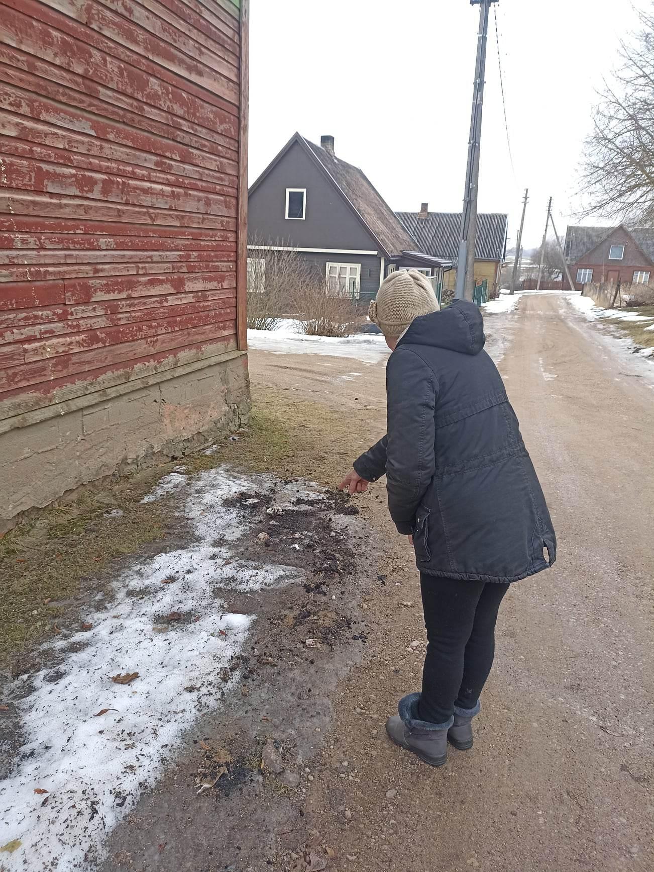Anot daugiabučio gyventojų, kantrybės taurė persipildė, kai po naujausių kaimynų apsilankymo po langais atsirado „staigmenėlė“ – ant žemės pridrabstyta fekalijų su panaudotomis tualetinio popieriaus draiskanomis. „Toks pyktis sukilo, kad negaliu. Tai ką, nežino, kur tualetas? Ar čia tyčia papylė, o dabar nesirodo?“ – piktinosi daugiabučio gyventoja, neapsikentusi šlykštaus vaizdo, kvapo ir užbarsčiusi fekalijas atneštomis žemėmis, o vaizdelio ant sniego nuotraukas išsisaugojusi telefone. Dėl šios problemos kreiptasi ir į seniūną, tačiau, pasak gyventojų, jis paaiškinęs, kad nieko negalįs padaryti, telieka laukti, kada šio namo gyventojai vėl pasirodys naujame savo būste ir pabandys su jais pasikalbėti.