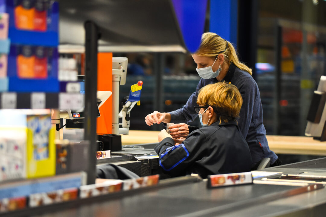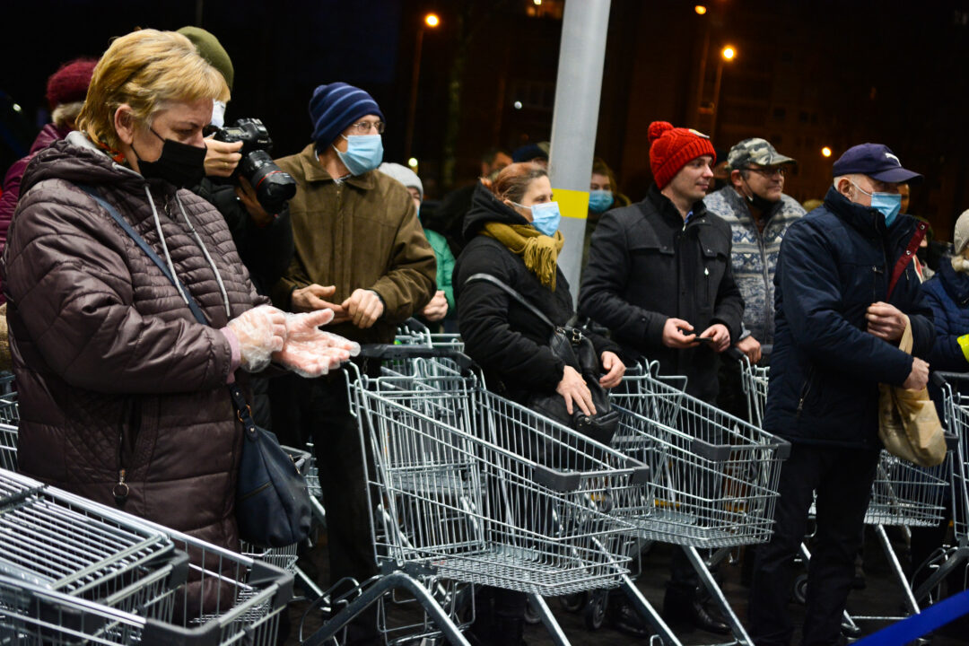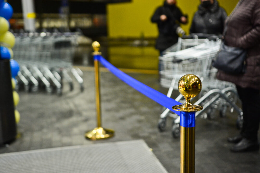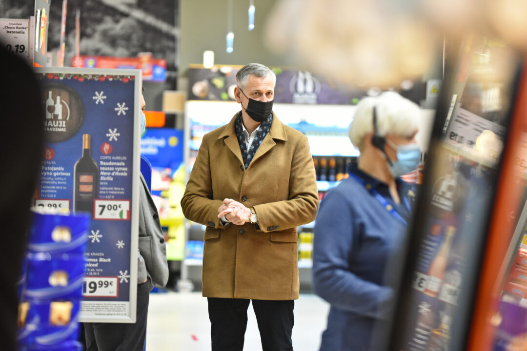 Perkirpus įkurtuvių juostelę, į prekybos centrą žengė pirmieji klientai. Čia galimybių paso nereikalaujama, bus ribojami pirkėjų srautai.