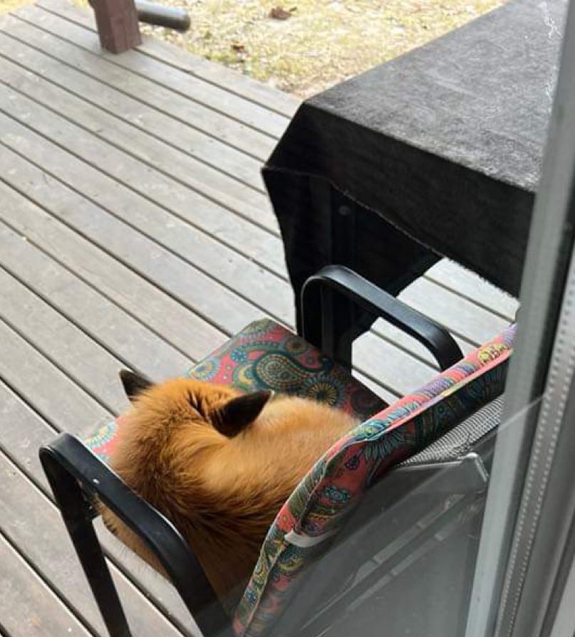 Lapė lankėsi vienos Rokiškio rajono gyventojos sodyboje. Gyvūnas atrodė nebaikštus, tačiau uodega – nušiurusi. Skaitytojos nuotr.