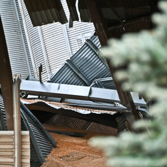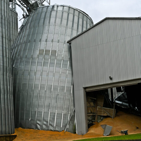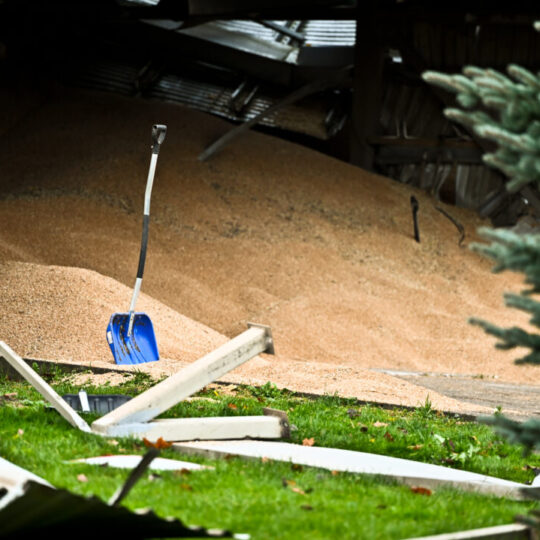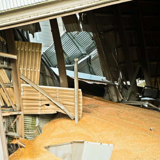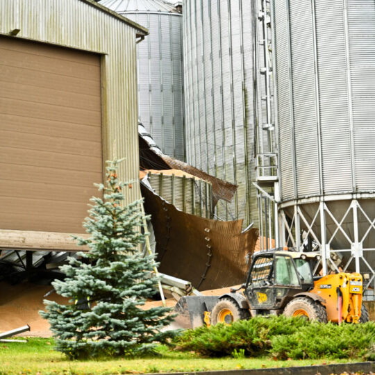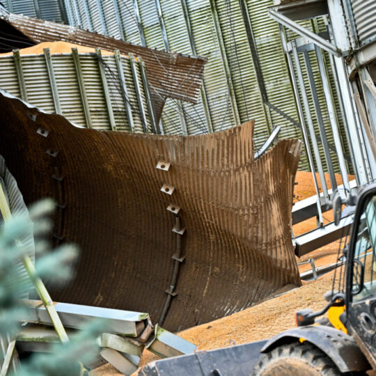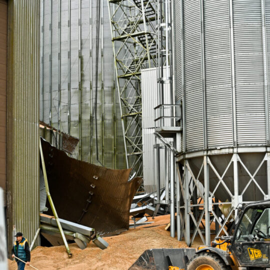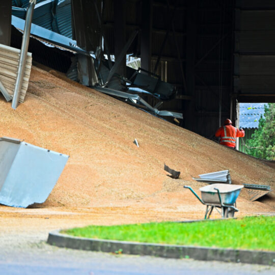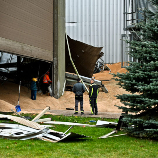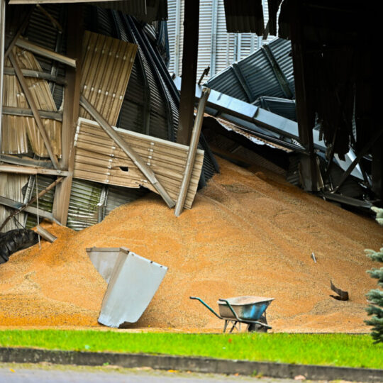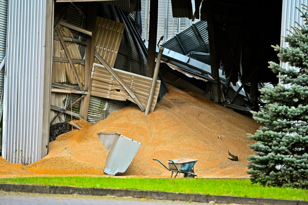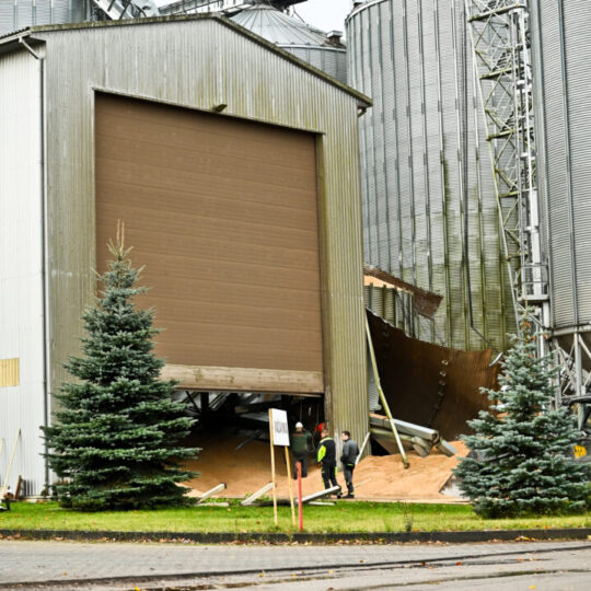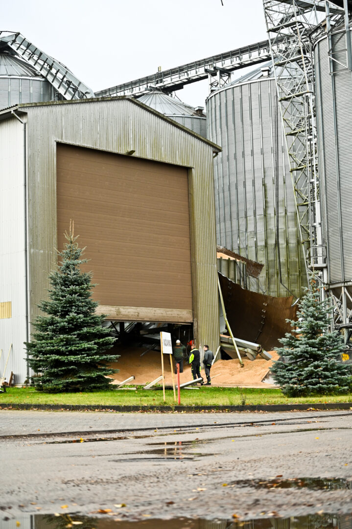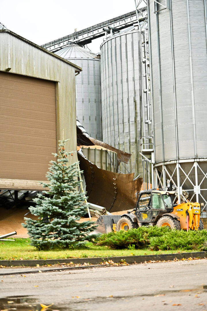 Antradienį svorio neatlaikė ir nugriuvo kooperatyvo „Gerkonių elevatorius“ viena iš grūdų saugyklų, esantis Rokiškyje. Patirta nemažai nuostolių: nukentėjo ne tik daugybė grūdų, bet ir šalia stovintis angaras. Ryte gausios darbininkų pajėgos šalino nelaimės padarinius.