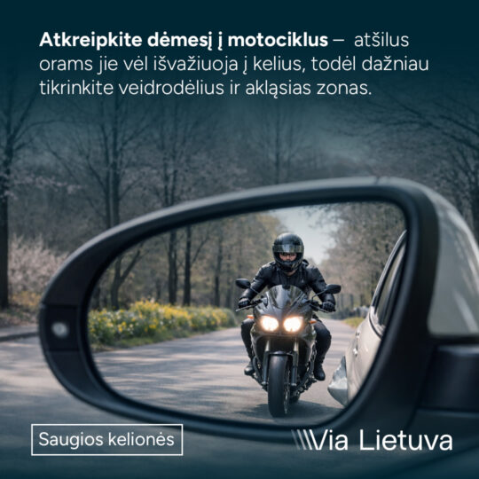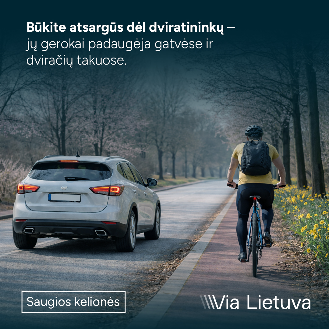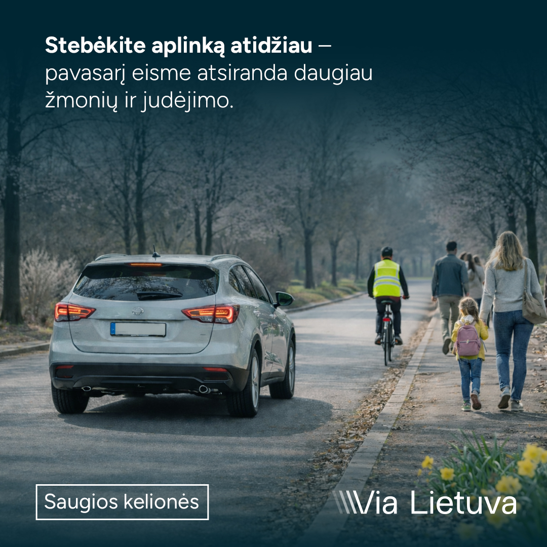 Atšilus orams, keliuose vis dažniau pasirodo motociklininkai, dviratininkai ir elektrinių paspirtukų naudotojai. Vairuojantiesiems automobilius patariama dažniau tikrinti veidrodėlius, akląsias zonas, laikytis saugaus atstumo ir vengti staigių manevrų. Pavasario keliuose reikia visada išlikti budriems.