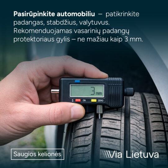 „Via Lietuva“ primena, kad nuo balandžio 1 d. iki spalio 31 d. nebetaikomas draudimas eksploatuoti motorines transporto priemones ir jų priekabas, mopedus, motociklus, triračius, visų rūšių keturračius, ir priekabas su vasarinėmis padangomis. Atkreipiame dėmesį, kad mopedus, motociklus, triračius, visų rūšių keturračius eksploatuoti su vasarinėmis padangomis draudžiama gruodžio–vasario mėnesiais, taip pat kovo–lapkričio mėnesiais, jeigu bent dalis važiuojamosios dalies, kuria važiuojama, yra apsnigta ar apledėjusi.