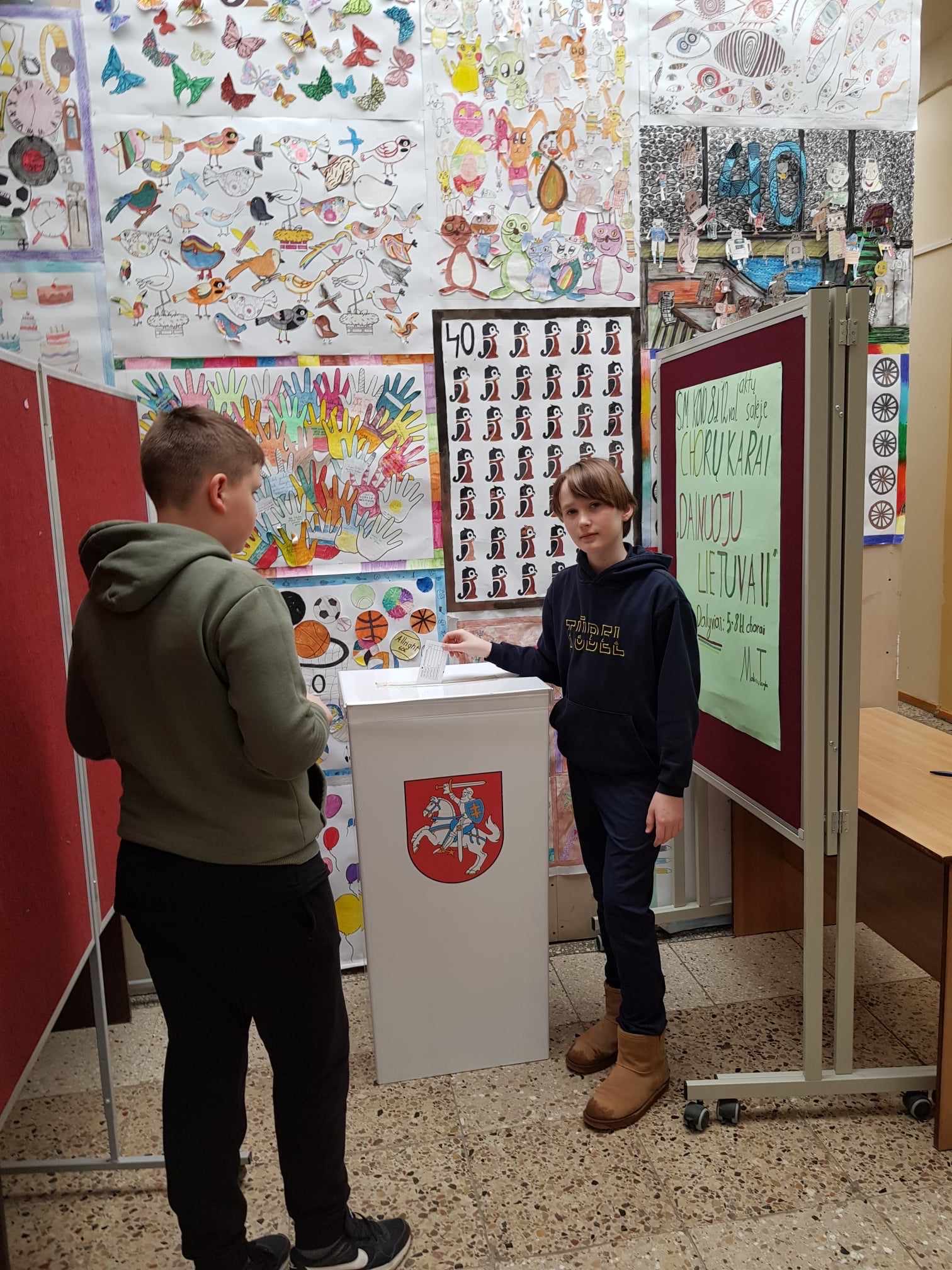 Kaip jau įprasta, progimnazijoje vyksta pačių mokinių rengiama rinkimų „simuliacija“. Urna, biuleteniai, balsavimo kabinos, sąrašai, balsų skaičiavimo komisija – viskas kaip tikruose rinkimuose, kuriuose, neilgai trukus, galėsime dalyvauti ir mes patys, sulaukę aštuoniolikos.
