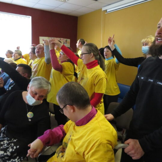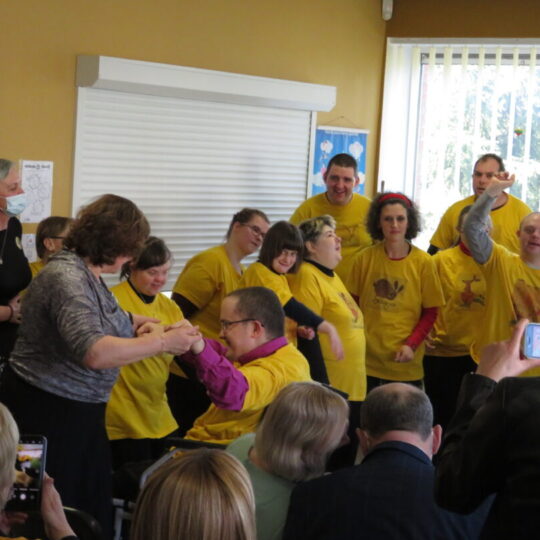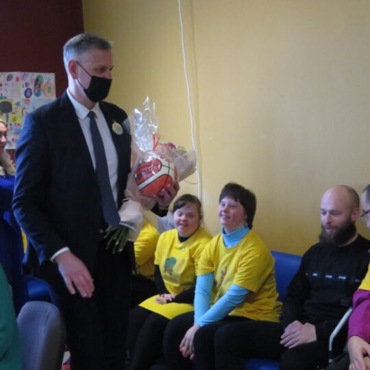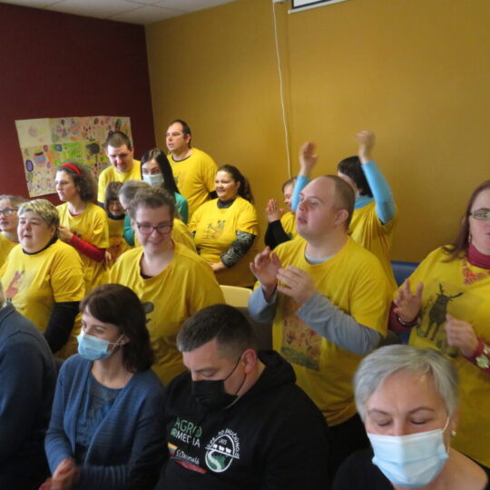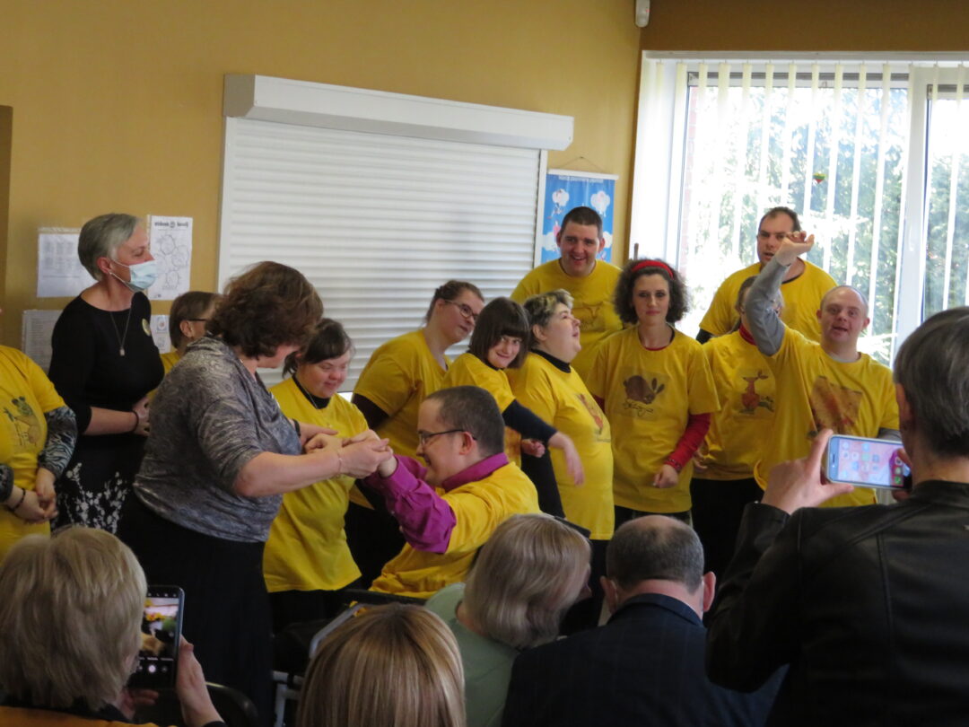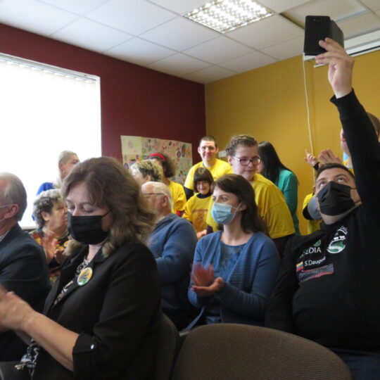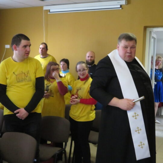 Pasveikinti įsikūrimo proga susirinko daug svečių, sveikintojų, kuriuos labai šiltai priėmė dienos centrą lankantys jaunuoliai. Jaunuolių nuotaikas labai taikliai apibūdino Rokiškio „Caritas“ vedėja Dangira Šatienė – po susitikimo su jais šypsena nuo lūpų nedingsta visą savaitę, nes užkrečia jų atvirumas, nuoširdumas. „Dievas sako ir vieni kitiems linkim – būkim laisvi. Jie yra laisvi, būna savimi. O mes kartais pamirštame būti savimi, įsispraudžiam į rėmus ir negalim net nusišypsoti“, – pastebėjo viešnia.