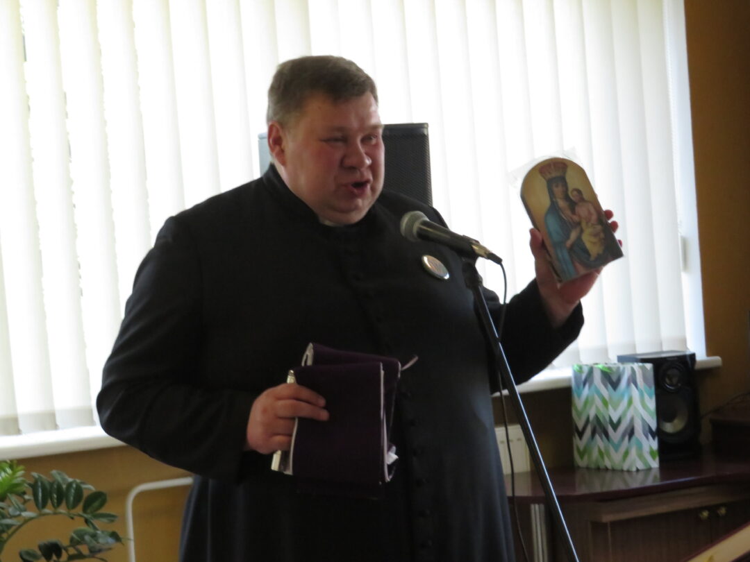 Patalpas palaimino Rokiškio dekanato dekanas Eimantas Novikas. Dovanodamas šventą paveikslą ,,Malonių versmė“, pažadėjo jaunuoliams piligriminę kelionę į Krekenavą (Panevėžio r.).