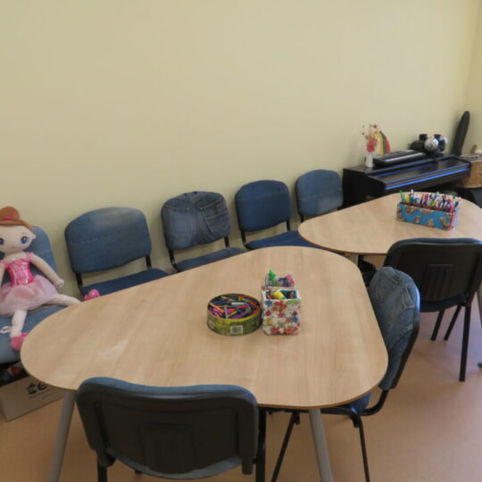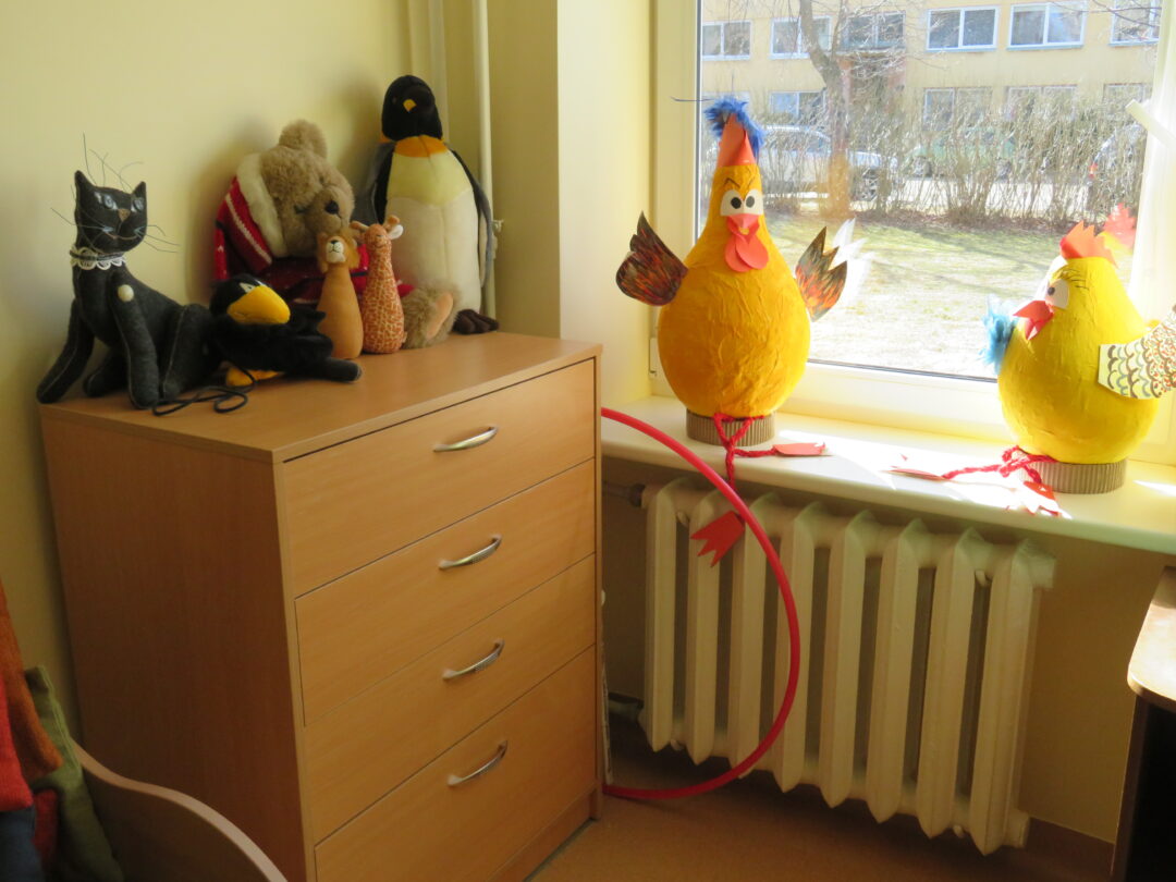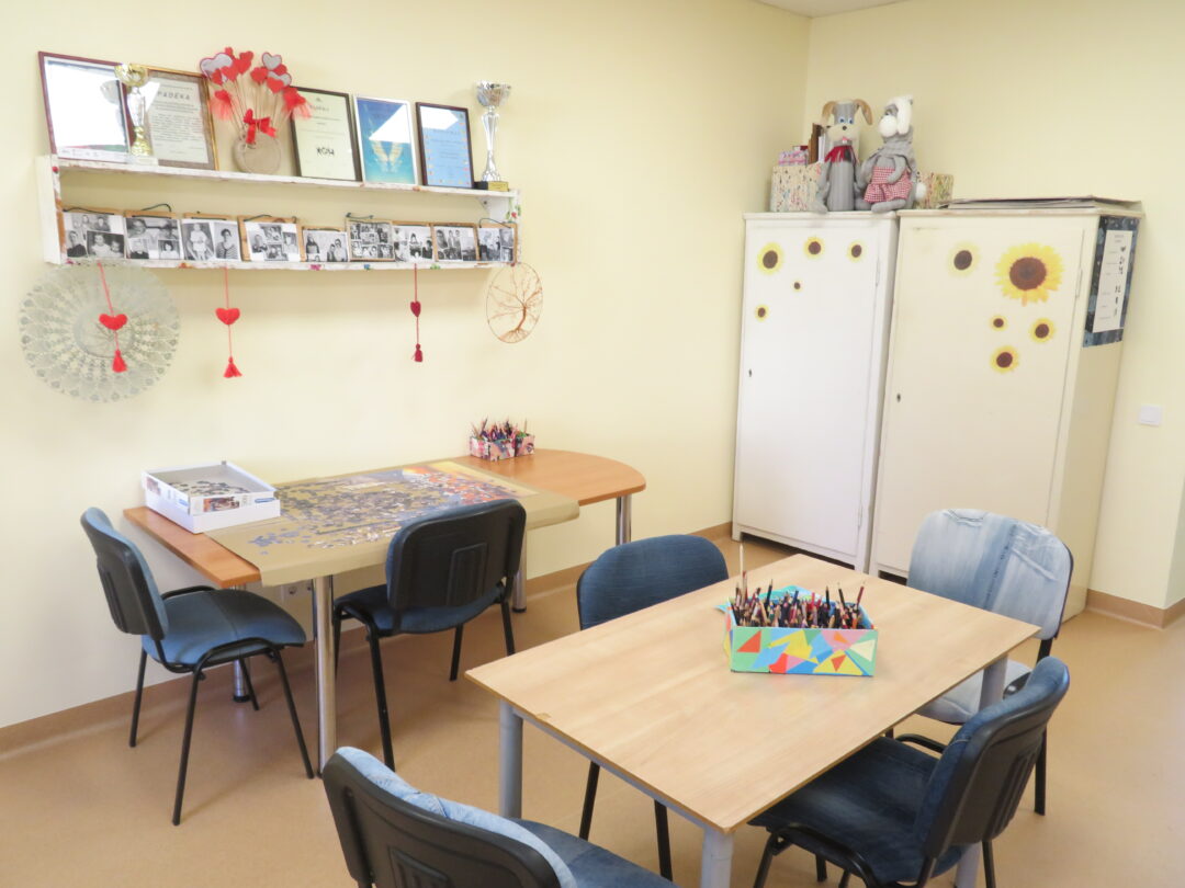 Vėliau svečiai, jaunuolių tėveliai buvo pakviesti apžiūrėti naująsias patalpas. Jaunuoliai čia išbūna 8 valandas. Lanko ne tik rokiškėnai, bet ir jaunuoliai iš Pandėlio, Panemunio, Maineivų, Žiobiškio, Juodupės. Juos atveža autobusas. Visos veiklos vyksta pirmajame pastato aukšte. „Dalinamės į nedideles grupes, kurios atskiruose kambariuose dainuoja, kuria, vaidina“, – pasakojo J.Dovydėnienė. Jaunuolių kūryba jau galima pasigrožėti – eksponuojama paroda „Molio išdaigos“, iš veltinio sukurti spalvingi paveikslai ir margučiai, angeliukai, kambariuose pilna ir kitokių rankdarbių, siuvinių, lipdinių…