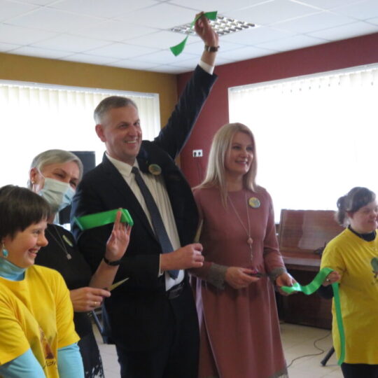 Simbolinę atidarymo juostelę perkirpo rajono savivaldybės meras Ramūnas Godeliauskas, Rokiškio socialinės paramos centro direktorė Jolanta Paukštienė ir padalinio vadovė Jūratė Dovydėnienė.
