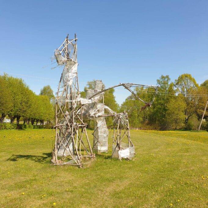 Minimas žirgas stovi Obeliuose, Stoties gatvėje, tiesiai už poliklinikos, prie turgelio. Čia pravažiuoja nemažai žmonių ir visiems jiems kliūva žirgas-vaiduoklis. „Tas žirgas apsuktas plėvele. Jis taip stovėjo nuo rudens per žiemą, todėl nuo šalčio, drėgmės ir saulės spindulių dabar jau visiškai sudriskęs. Baisu. Ar taip turi atrodyti meno kūrinys?