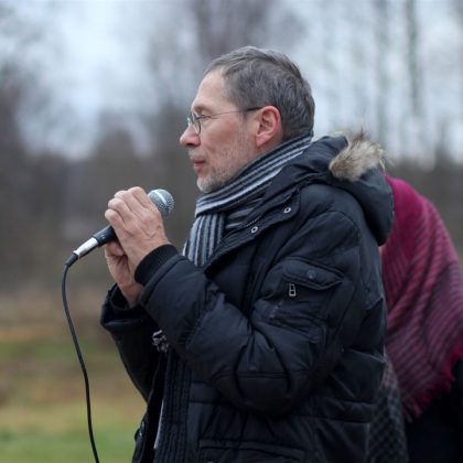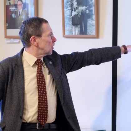 Prieš atvykdamas į muziejų profesorius susitiko su Obelių gimnazijos bendruomene, o palikęs Obelius keliavo į Rokiškį, kur rajono savivaldybėje bendravo su gyventojais.