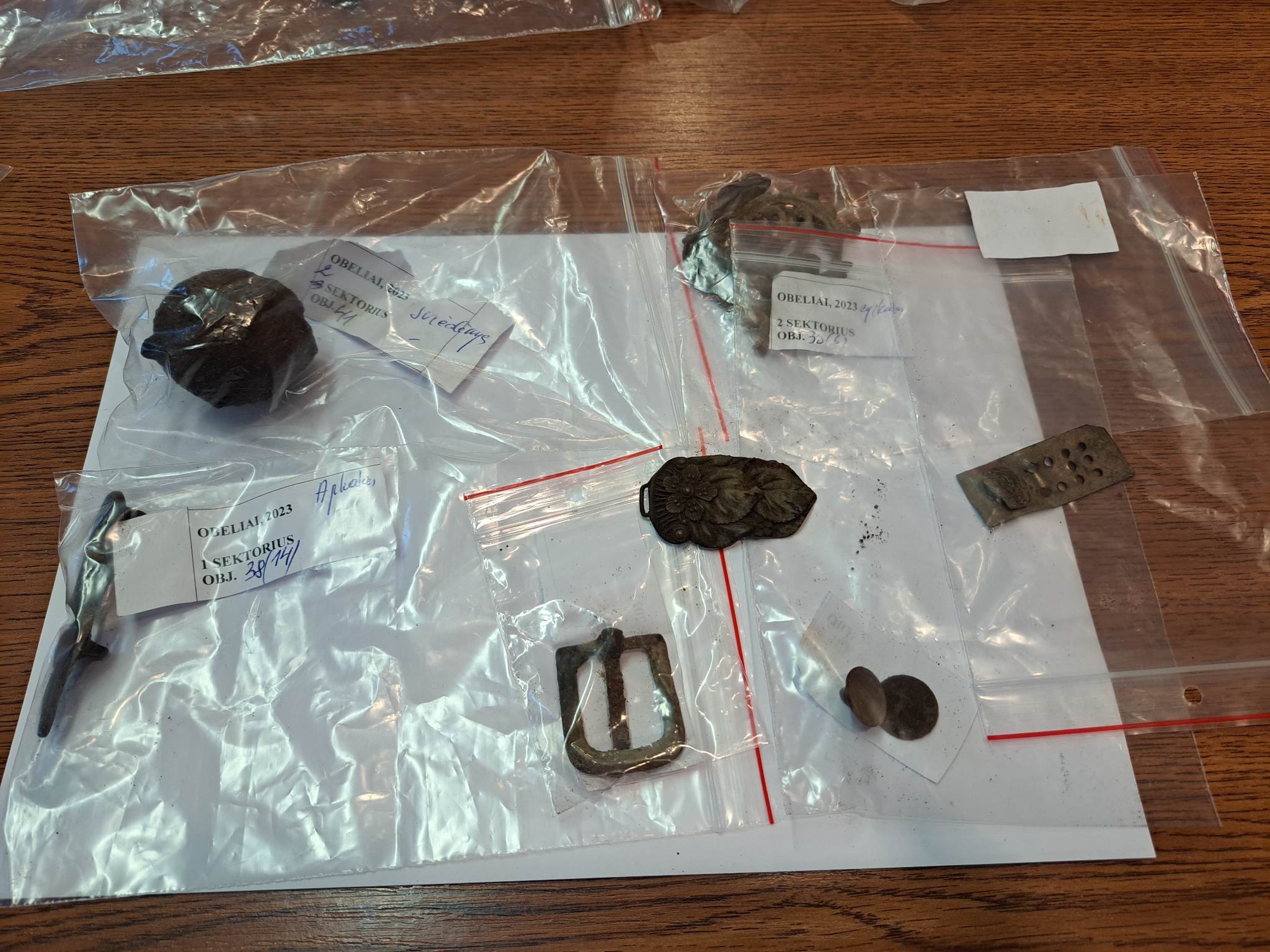 Atvyko metalo ieškiklių naudotojai iš visos Lietuvos. Buvo ir trys Lenkijos piliečiai. Prie jų prisijungė netgi norintis susipažinti su ieškiklių naudojimu Vitalis Vošterys. Kasinėjimais domėjosi ir Obelių gimnazijos mokinys, istorijos entuziastas Eligijus. Jis parodyti archeologei atsinešė toje vietovėje rastus radinius. R. Songailaitė supažindino juos su buvusio dvaro nuotraukomis, papasakojo vietovės istoriją. Laisvės kovų istorijos muziejuje saugomose nuotraukose atvaizduotas Obelių dvaras XIX a. Archeologė papasakojo apie archeologinius tyrimus 2020–2021 m., ieškant senosios Obelių dvarvietės, bei pristatė 2023 m. tyrimus. Kasinėta keliose vietose, iškasti šeši šurfai (tai vertikalūs (retai nuožulnūs) požeminiai kasiniai). Rasta archeologinių radinių, bet daugiausia keramikos šukių. Taip pat rasta daug XX a. monetų. Kadangi tikrai žinoma, kad šioje vietoje buvo dvaras, kilo klausimas dėl gyvenvietės, jos kapinaičių, galbūt ir piliakalnio vietų. Metalinius radinius – monetas, juvelyrikos dirbinius – gali aptikti metalo ieškikliai.