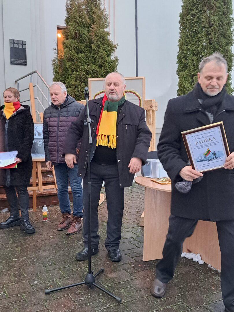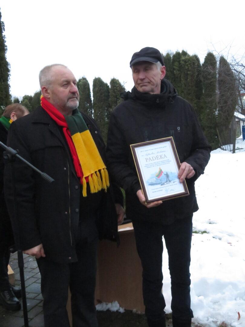 Laisvės gynėjams V. Masiulis įteikė Lietuvos valstybės vadovo Vytauto Landsbergio pasirašytas padėkas už indėlį į Lietuvos Nepriklausomybę, už tai, kad 1991-ųjų sausyje atsiliepė į kvietimą padėti šaliai istoriškai lemtingomis valandomis.