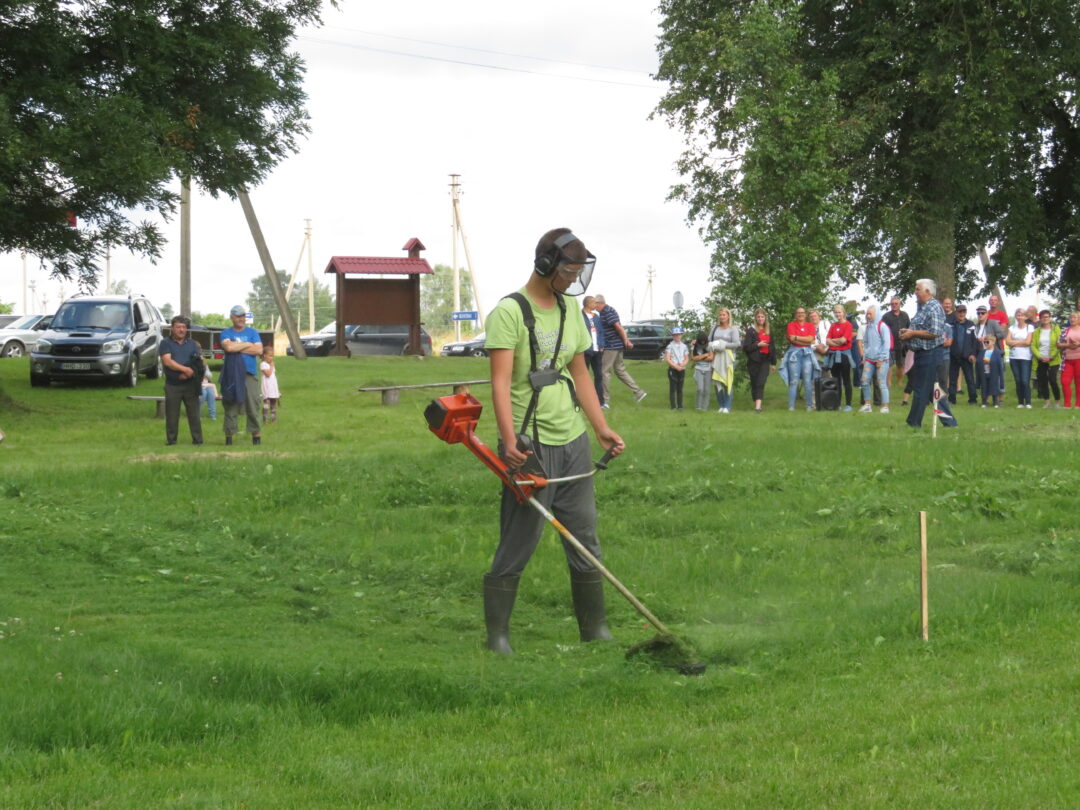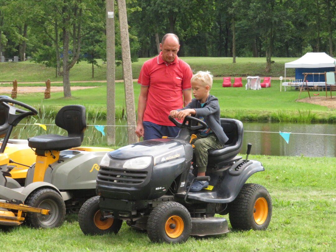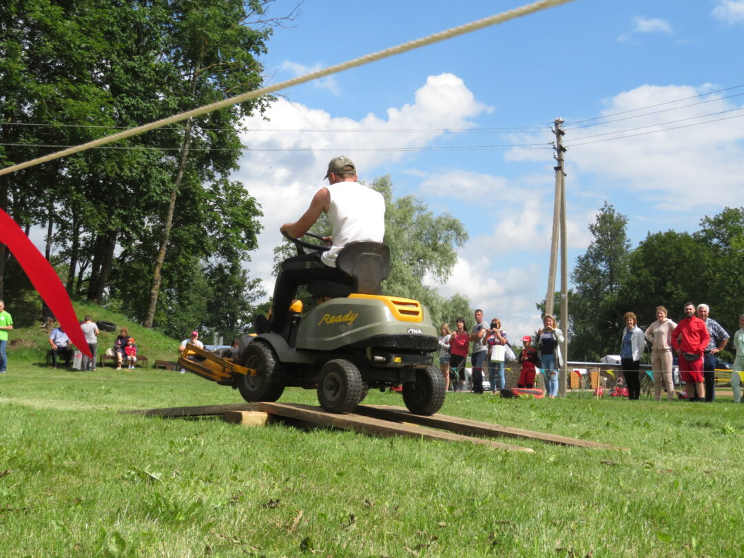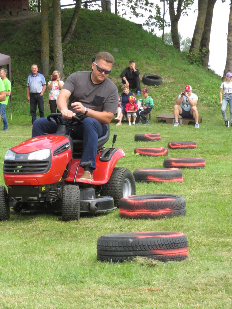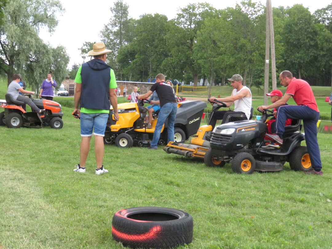 Prieš vidurdienį parkas sugaudė. Čia lenktyniavo sodo technikos mėgėjai, medžio rąstelių pjovėjai. Jie rungėsi, kas geriau nešiojamąja žoliapjove nušienaus laukelį, motoriniu pjūklu nupjaus ploniausią „ripką“. Šiose rungtyse netrūko azarto ir išradingumo. Šienpjovys Andrius bandė priblokšti netradicine apranga ir įmantriais pjovimo būdais – vietoje šalmo dėvėjo ausinę kepurę ir pirmiausia žolėje išpjovė ornamentą. Entuziastingai į darbą kibę „ripkų“ pjovėjai stebino vieni kitus, į rungtį įsijungė ir dvi moterys, o nugalėtojus teko aiškintis papildomai. Ploniausia „ripka“ siekė 4 mm. Figūrinėje trasoje varžytasi sodo traktoriukais. Jų modeliai skyrėsi, tačiau, pasak renginio vedėjo, traktoriuko greitis priklauso „nuo tarpinės tarp sėdynės ir vairo“, todėl visi lygūs. Trasoje panoro varžytis ne tik suaugusieji, bet ir vaikai.