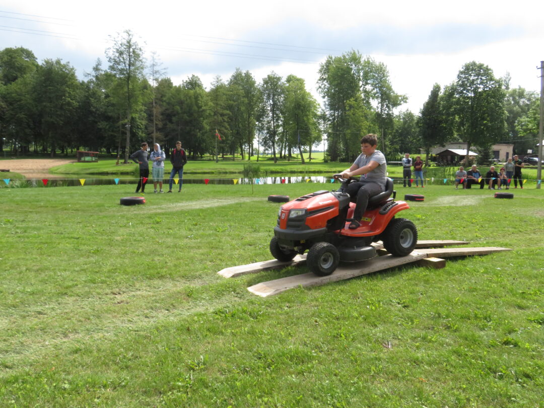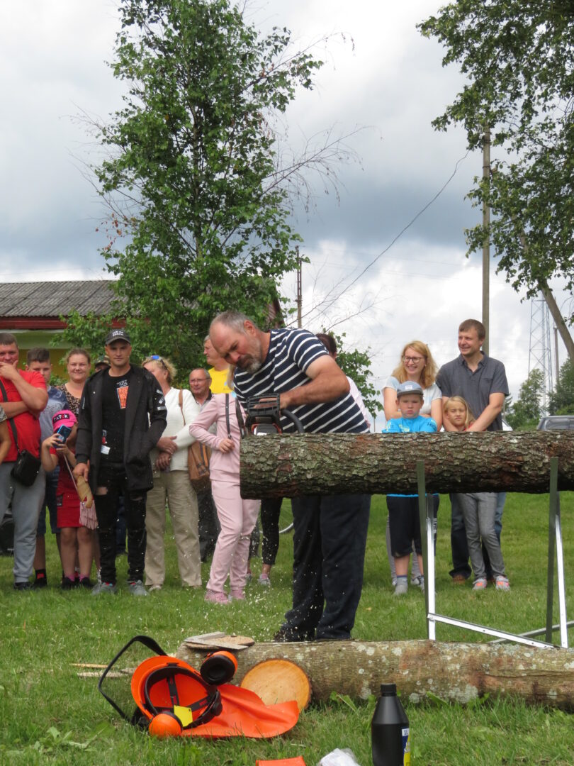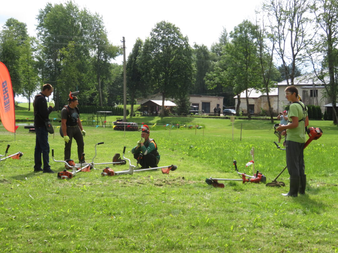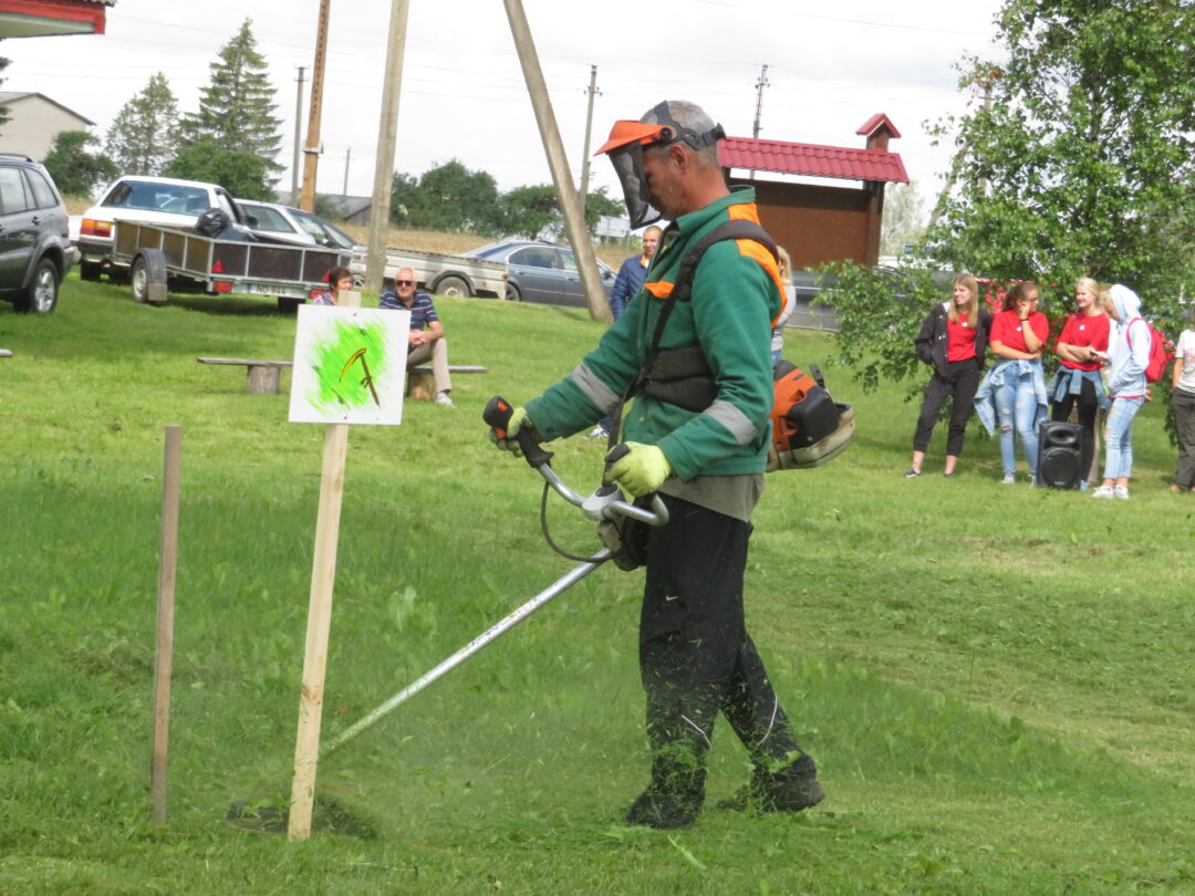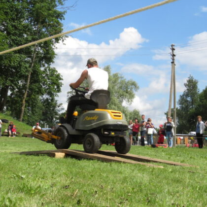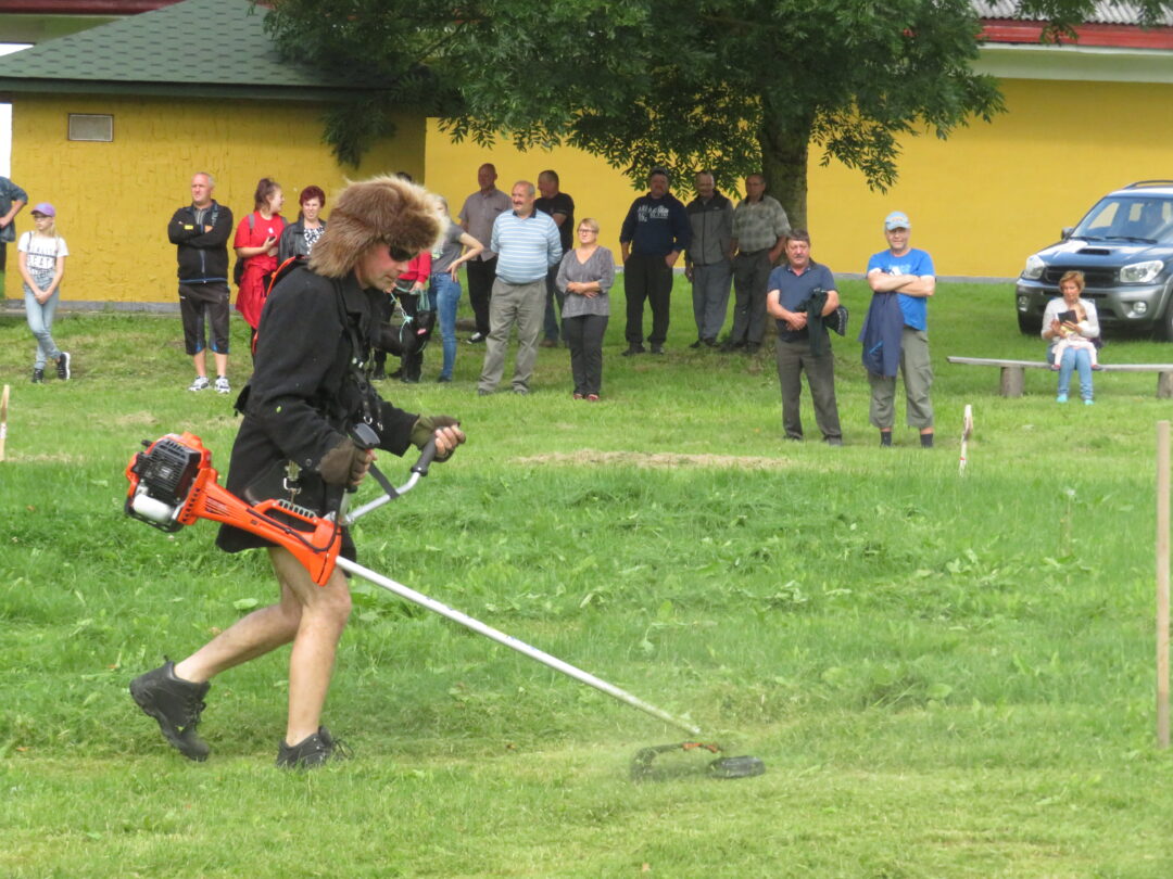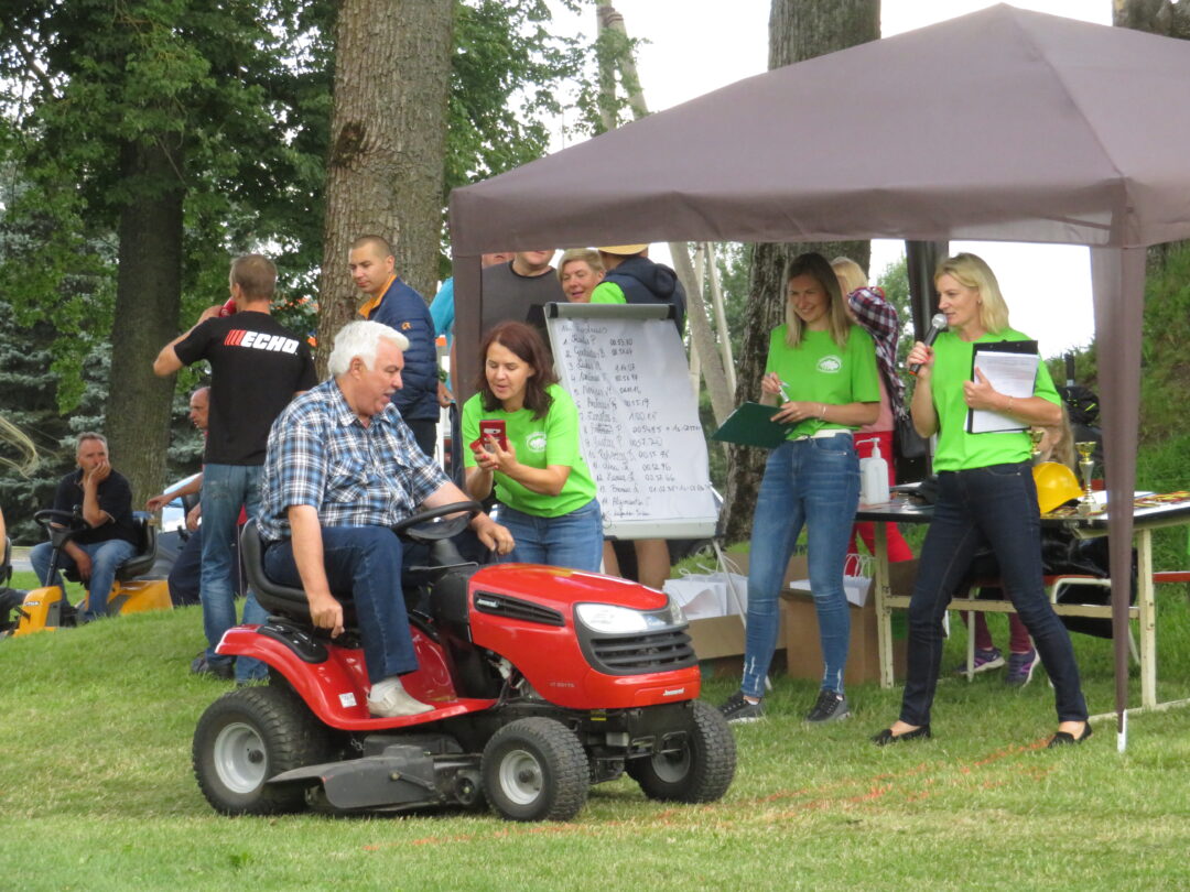 Prieš vidurdienį parkas sugaudė. Čia lenktyniavo sodo technikos mėgėjai, medžio rąstelių pjovėjai. Jie rungėsi, kas geriau nešiojamąja žoliapjove nušienaus laukelį, motoriniu pjūklu nupjaus ploniausią „ripką“. Šiose rungtyse netrūko azarto ir išradingumo. Šienpjovys Andrius bandė priblokšti netradicine apranga ir įmantriais pjovimo būdais – vietoje šalmo dėvėjo ausinę kepurę ir pirmiausia žolėje išpjovė ornamentą. Entuziastingai į darbą kibę „ripkų“ pjovėjai stebino vieni kitus, į rungtį įsijungė ir dvi moterys, o nugalėtojus teko aiškintis papildomai. Ploniausia „ripka“ siekė 4 mm. Figūrinėje trasoje varžytasi sodo traktoriukais. Jų modeliai skyrėsi, tačiau, pasak renginio vedėjo, traktoriuko greitis priklauso „nuo tarpinės tarp sėdynės ir vairo“, todėl visi lygūs. Trasoje panoro varžytis ne tik suaugusieji, bet ir vaikai.