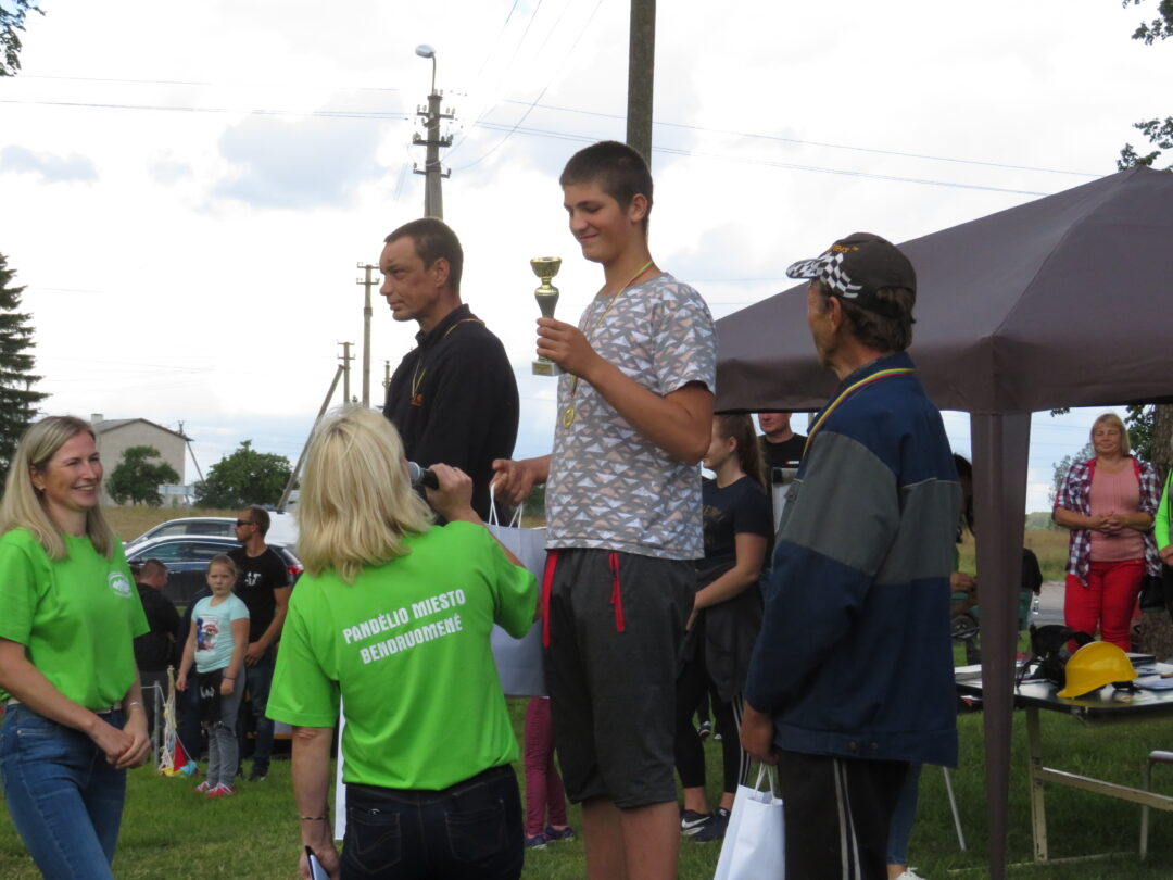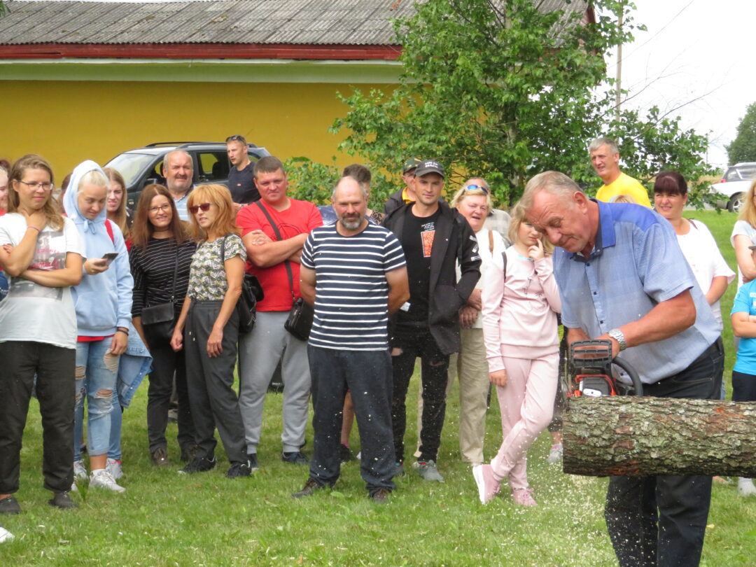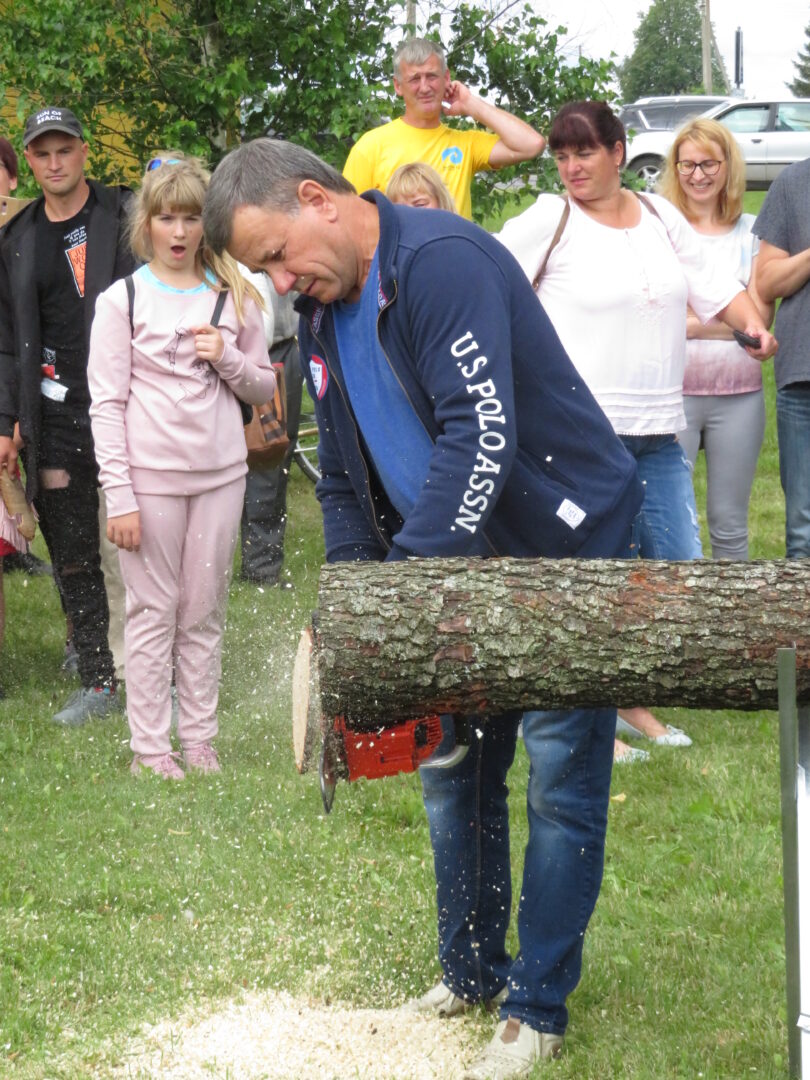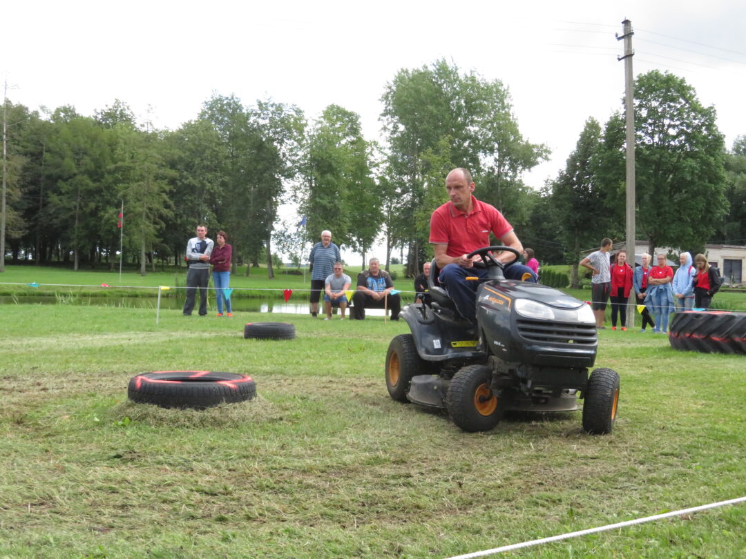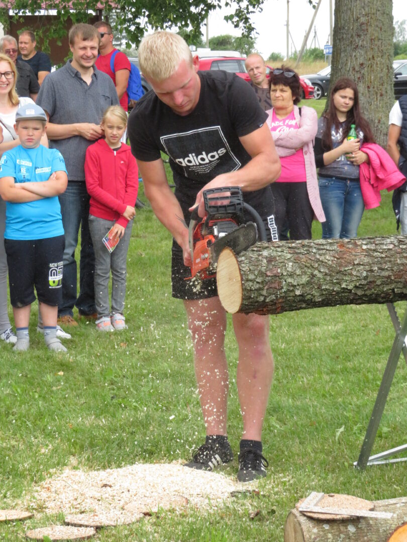Prieš vidurdienį parkas sugaudė. Čia lenktyniavo sodo technikos mėgėjai, medžio rąstelių pjovėjai. Jie rungėsi, kas geriau nešiojamąja žoliapjove nušienaus laukelį, motoriniu pjūklu nupjaus ploniausią „ripką“. Šiose rungtyse netrūko azarto ir išradingumo. Šienpjovys Andrius bandė priblokšti netradicine apranga ir įmantriais pjovimo būdais – vietoje šalmo dėvėjo ausinę kepurę ir pirmiausia žolėje išpjovė ornamentą. Entuziastingai į darbą kibę „ripkų“ pjovėjai stebino vieni kitus, į rungtį įsijungė ir dvi moterys, o nugalėtojus teko aiškintis papildomai. Ploniausia „ripka“ siekė 4 mm. Figūrinėje trasoje varžytasi sodo traktoriukais. Jų modeliai skyrėsi, tačiau, pasak renginio vedėjo, traktoriuko greitis priklauso „nuo tarpinės tarp sėdynės ir vairo“, todėl visi lygūs. Trasoje panoro varžytis ne tik suaugusieji, bet ir vaikai.