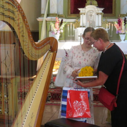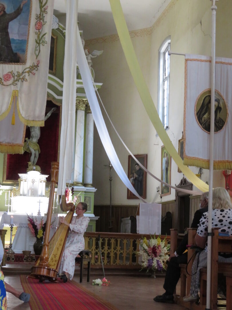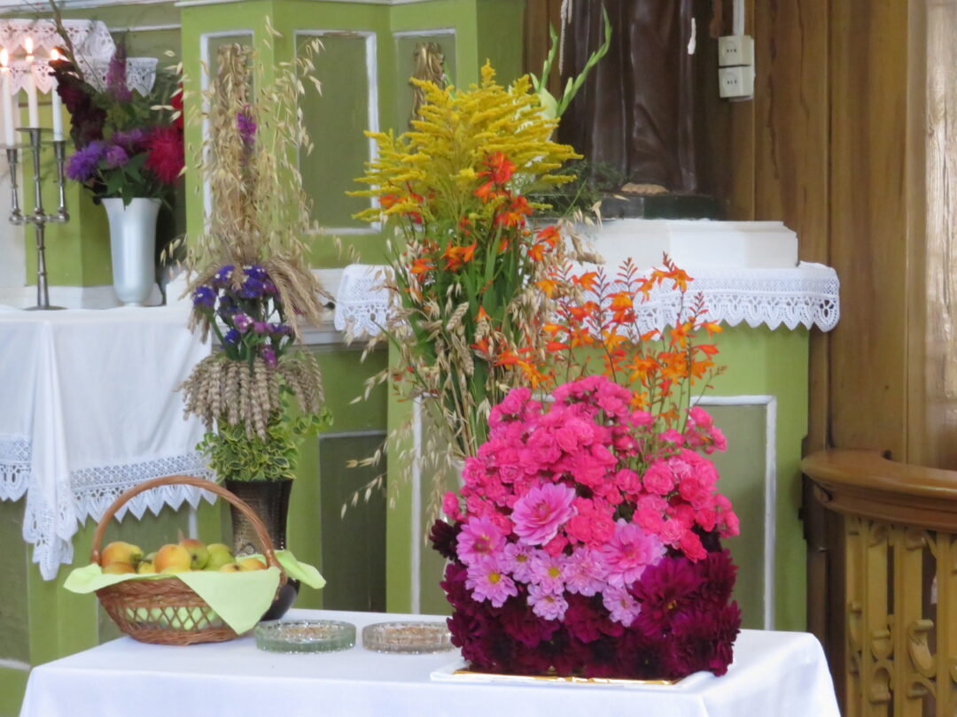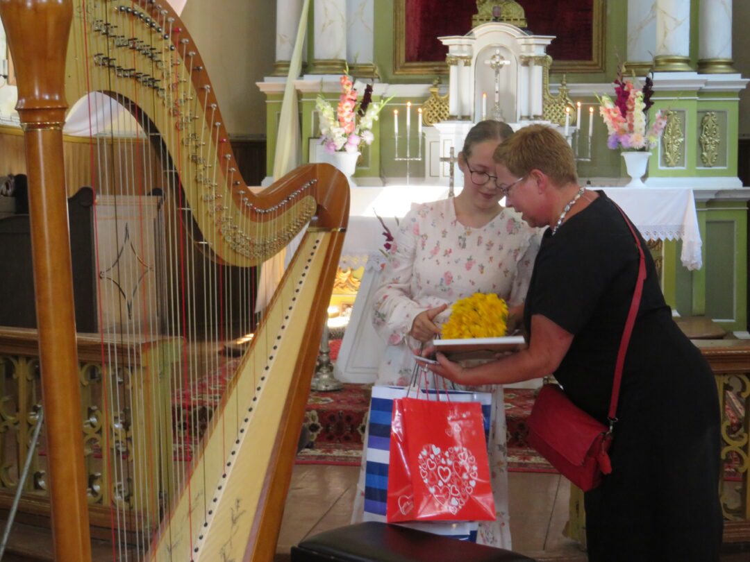 Baigiantis šv. Mišioms, jas aukojęs kun. mgr. Aivaras Kecorius dėkojo nuolat besirūpinantiems Onuškio bažnyčia, pašventino atneštus žolynus ir vaisius, palaimino žmones. Pasak dvasininko, pasitarus su parapijos aktyvu, šįmet atlaidus nuspręsta švęsti kiek kukliau: po šv. Mišių apsiriboti jaunosios arfininkės Giedros Julijos Tutkutės koncertu ir tautodailininkės Irenos Stasikėlienės paveikslų paroda, o agapę atidėti kitam kartui. Tačiau bendravimo apribojimai, būtinas veido kaukių dėvėjimas nesugadino atlaidų iškilmingumo, nes šv. Mišiose giedojo svečiai – Utenos Kristaus žengimo į dangų parapijos moterų ansamblis, o vargonavo maestro Osvaldas Macijauskas.