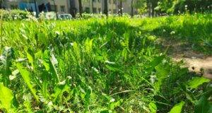Prie daugiabučių – žolė iki kelių