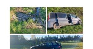 Nuo kelio nuslydo mikroautobusas vežęs automobilį