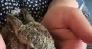 Darželyje rastas kiškis perduotas į saugias rankas
