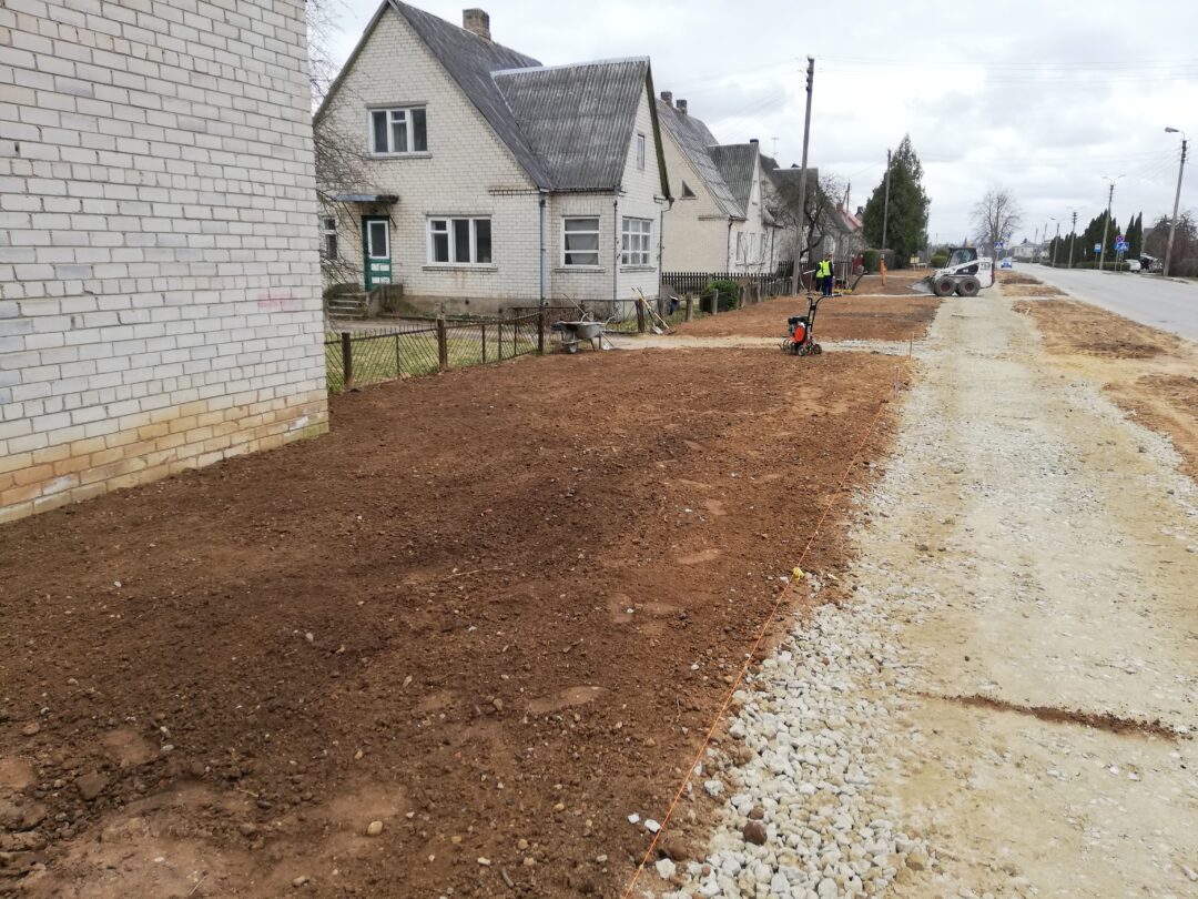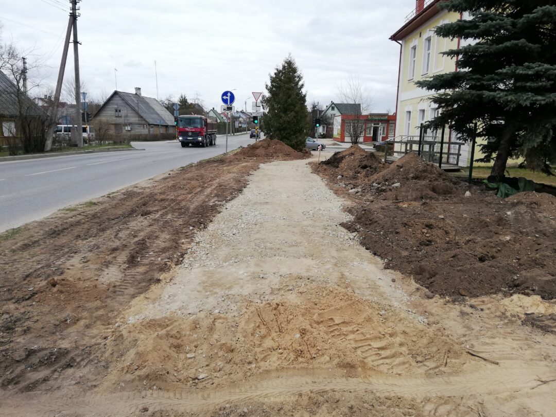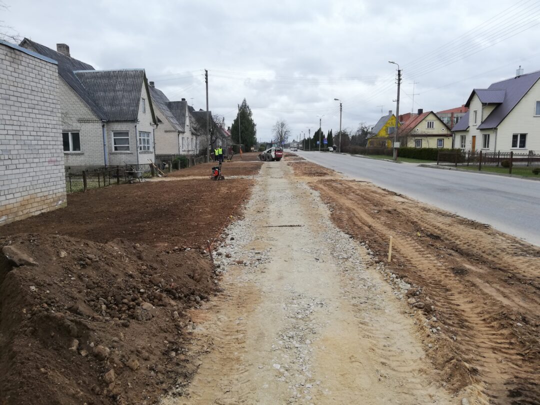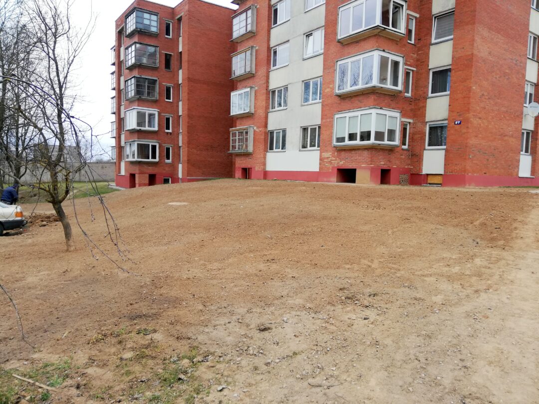 Dar neseniai čia stūksojo apkasai, o gyventojai murkdėsi purve arba vaikščiojo per grumstus. Anot miesto seniūno Arūno Krasausko, buvo rimčiau pakalbėta su rangovais ir šie nedelsdami pradėjo tvarkyti miesto aplinką. „Pagaliau darbai pajudėjo, kiekvieną dieną tikriname ir kontroliuojame. Pirma užduotis buvo, kad žmonės saugiai galėtų eiti ir grįžti iš poliklinikos. Čia kol kas dirba viena brigada, kai baigs darbus, kelsis į mikrorajoną“, – informavo seniūnas.