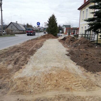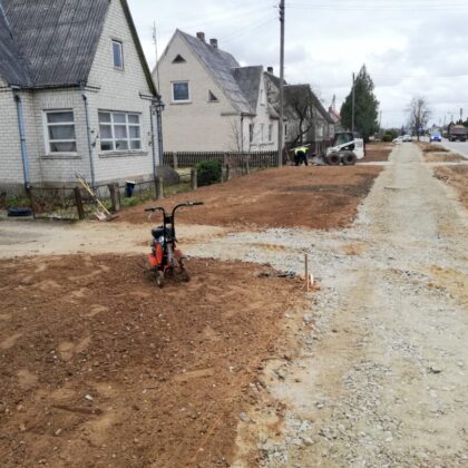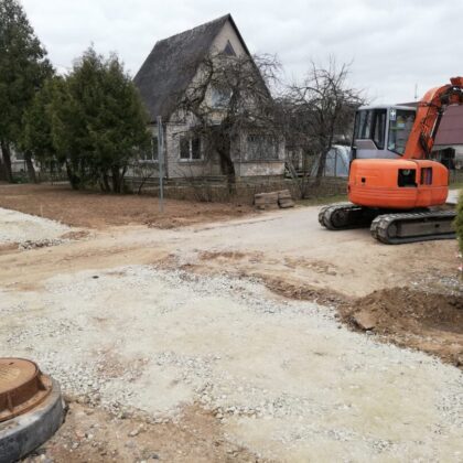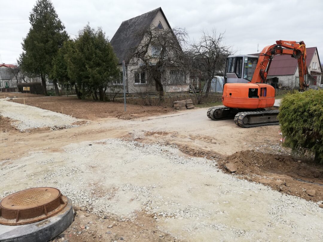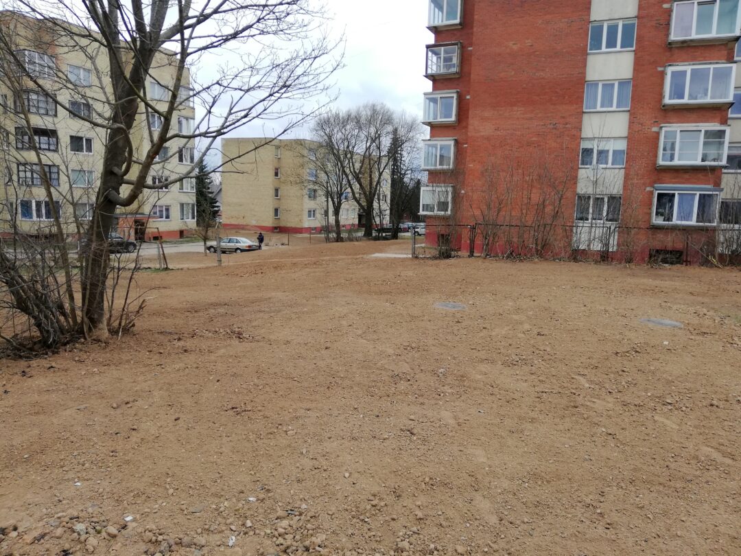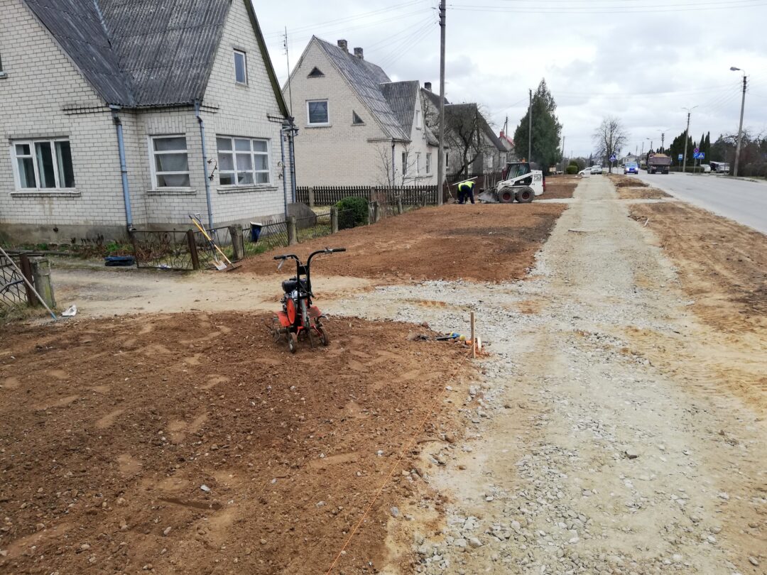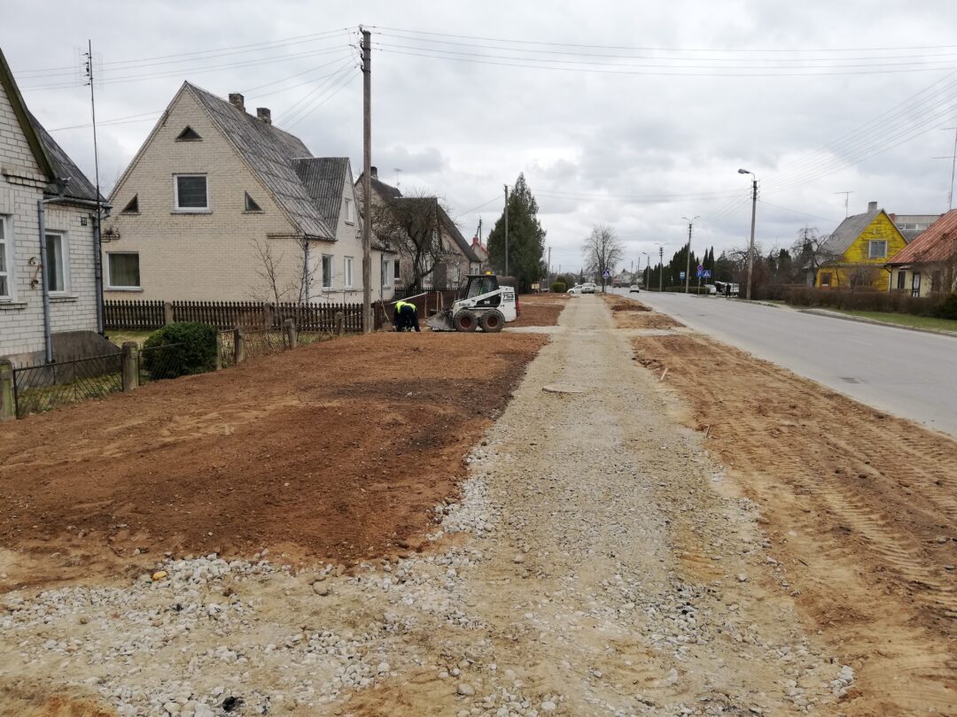 Dar neseniai čia stūksojo apkasai, o gyventojai murkdėsi purve arba vaikščiojo per grumstus. Anot miesto seniūno Arūno Krasausko, buvo rimčiau pakalbėta su rangovais ir šie nedelsdami pradėjo tvarkyti miesto aplinką. „Pagaliau darbai pajudėjo, kiekvieną dieną tikriname ir kontroliuojame. Pirma užduotis buvo, kad žmonės saugiai galėtų eiti ir grįžti iš poliklinikos. Čia kol kas dirba viena brigada, kai baigs darbus, kelsis į mikrorajoną“, – informavo seniūnas.