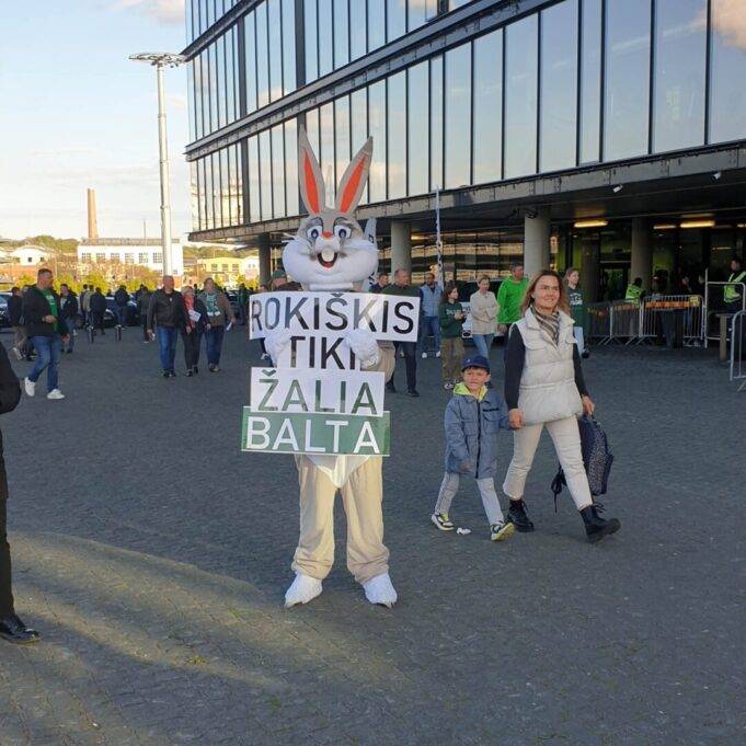 Tądien į areną sugužėjo keliolika tūkstančių sirgalių, o vienas jų buvo išties išskirtinis – Rokiškio kiškių kiškis, kuris sirgalius pasitiko su užrašu „Rokiškis tiki žalia balta“.