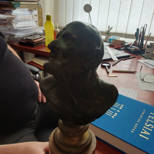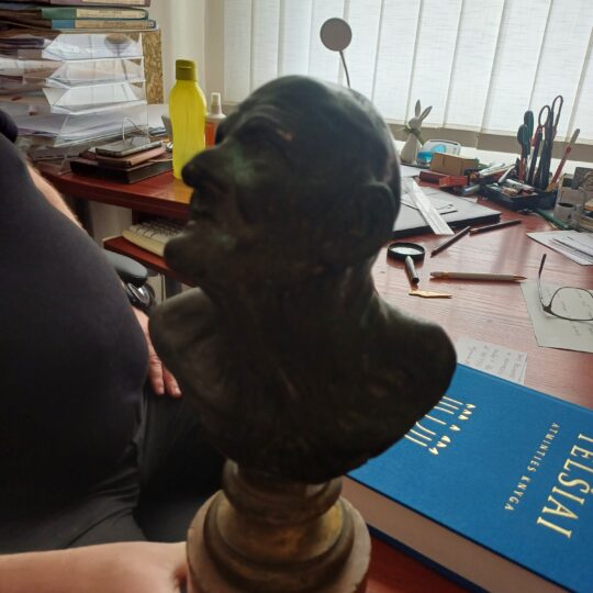 Muziejininkai netruko išsiaiškinti, jog ši skulptūra – Bolonijos menininko Reni Guido (1575-1642) biusto „Senio galva“, kituose šaltiniuose įvardijamo kaip „Senekos galva“, bronzinė kopija. Originalas saugomas Italijoje, Nacionaliniame Venecijos rūmų muziejuje.