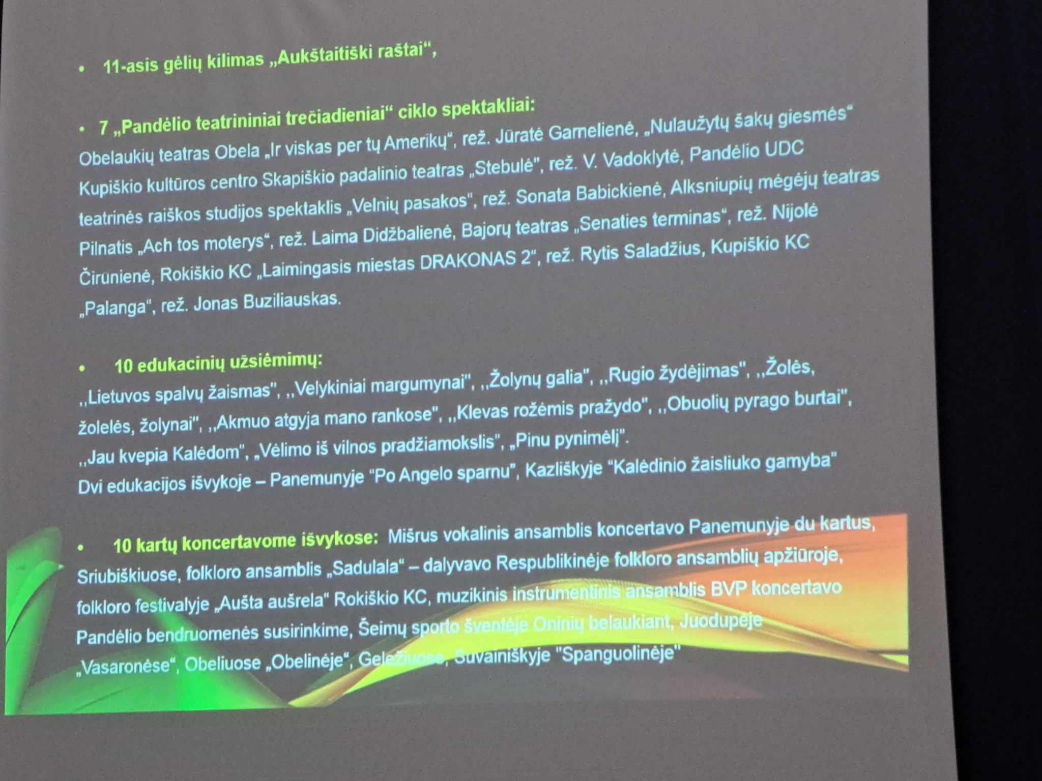 Pačią pirmąją šių metų dieną Pandėlio seniūnijoje gyveno 2297 gyventojai. Per metus gyventojų sumažėjo 83-imis, o per dešimtį metų – net 800. Seniūnas Algirdas Kulys skubėjo susirinkusius nuraminti, kad gyventojų mažėjimą lėmė ne tik mirtys, bet ir migracija, ir kiti dalykai.
