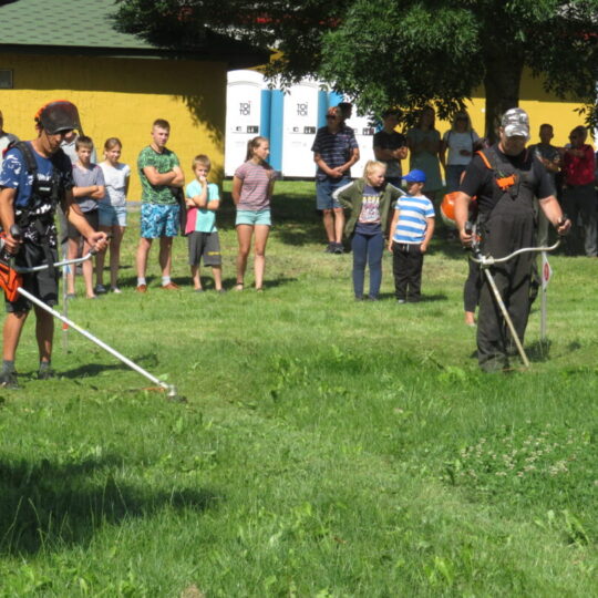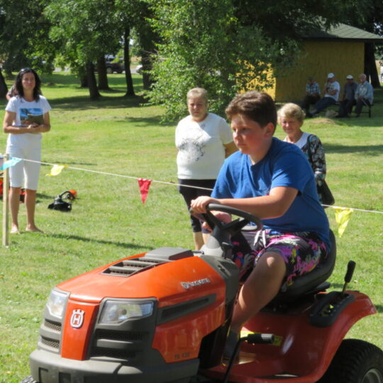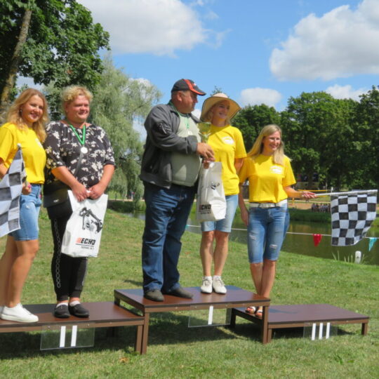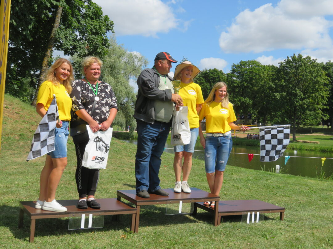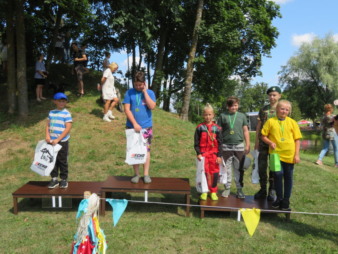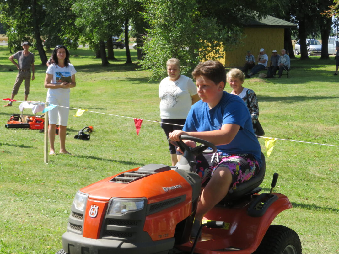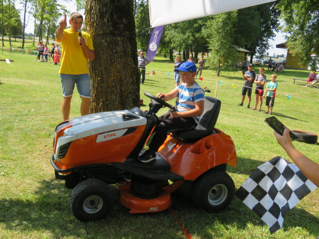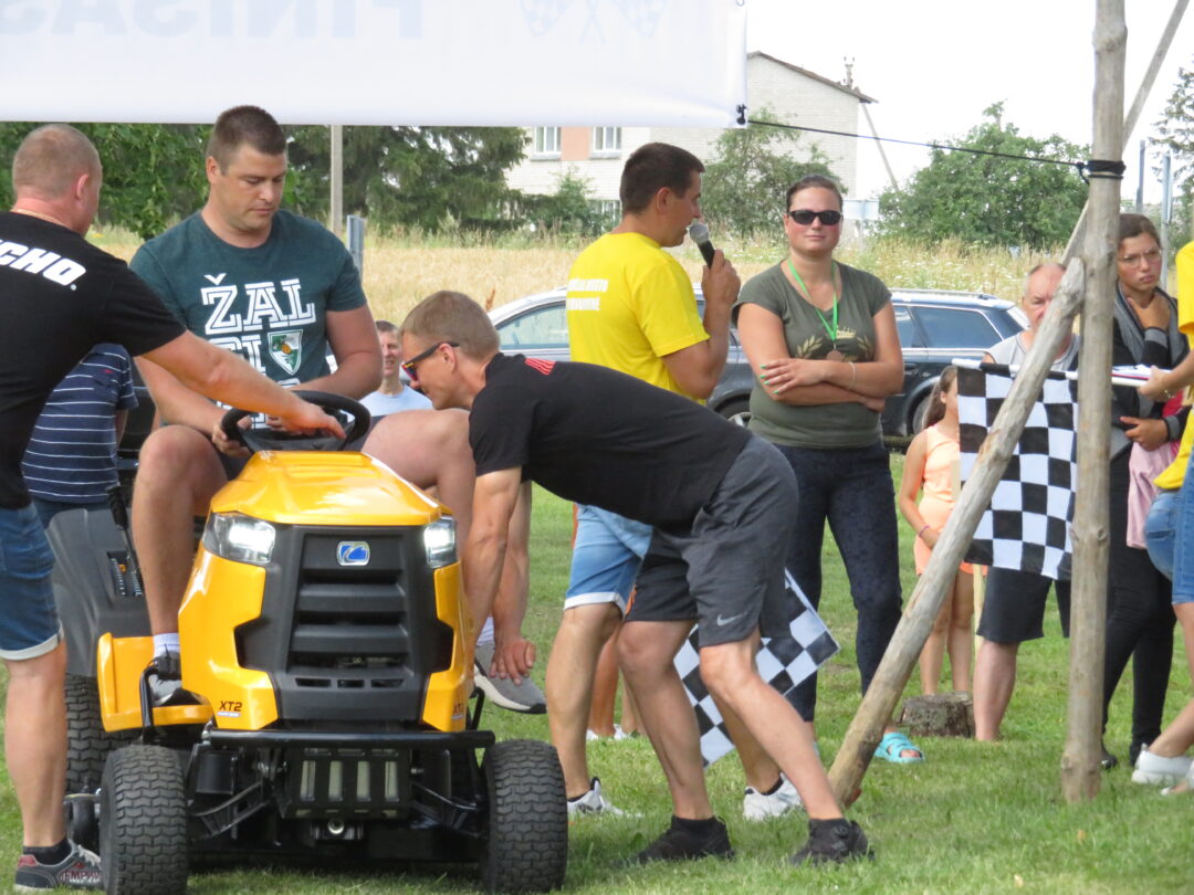 Nuo 11 valandos gamtos garsus užgožė variklių gaudesys. Pjovimo trimeriais rungtį laimėjo Andrius Povilauskas, antra liko Lina Kulikauskienė, trečias – Žydrūnas Jurevičius. Vėliau besivaržantieji sėdo į galingesnę techniką – sodo traktoriukus – ir lenktyniavo, kuris greičiau įveiks trasą. Tarp vaikų greičiausiai iki finišo atvažiavo Gustas Pranckūnas, jo varžovai užtruko tik keliomis sekundėmis ilgiau. Įnirtinga kova vyko ir tarp suaugusiųjų. Atskirai lenktyniavo važiuojantieji rėmėjų ir savo technika. Šią rungtį laimėjo Nerijus Mišenis ir Gintautas Butkus.