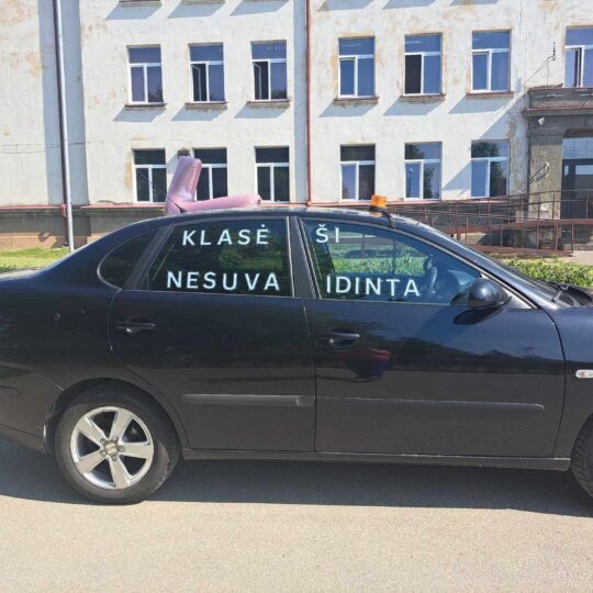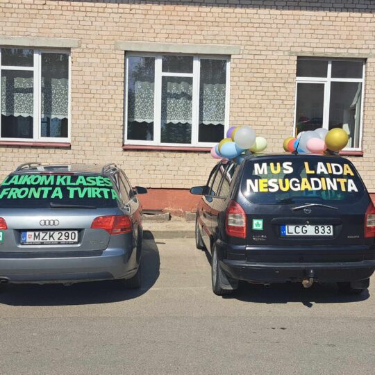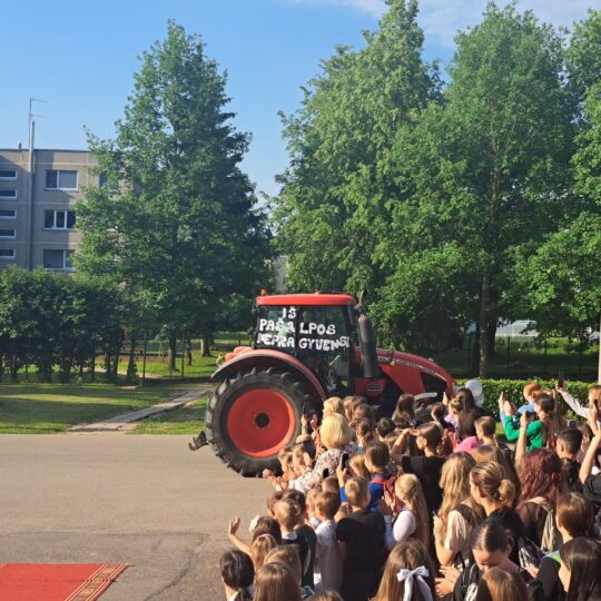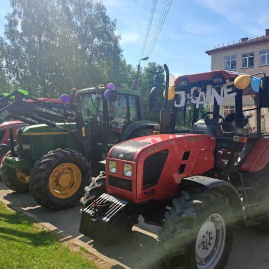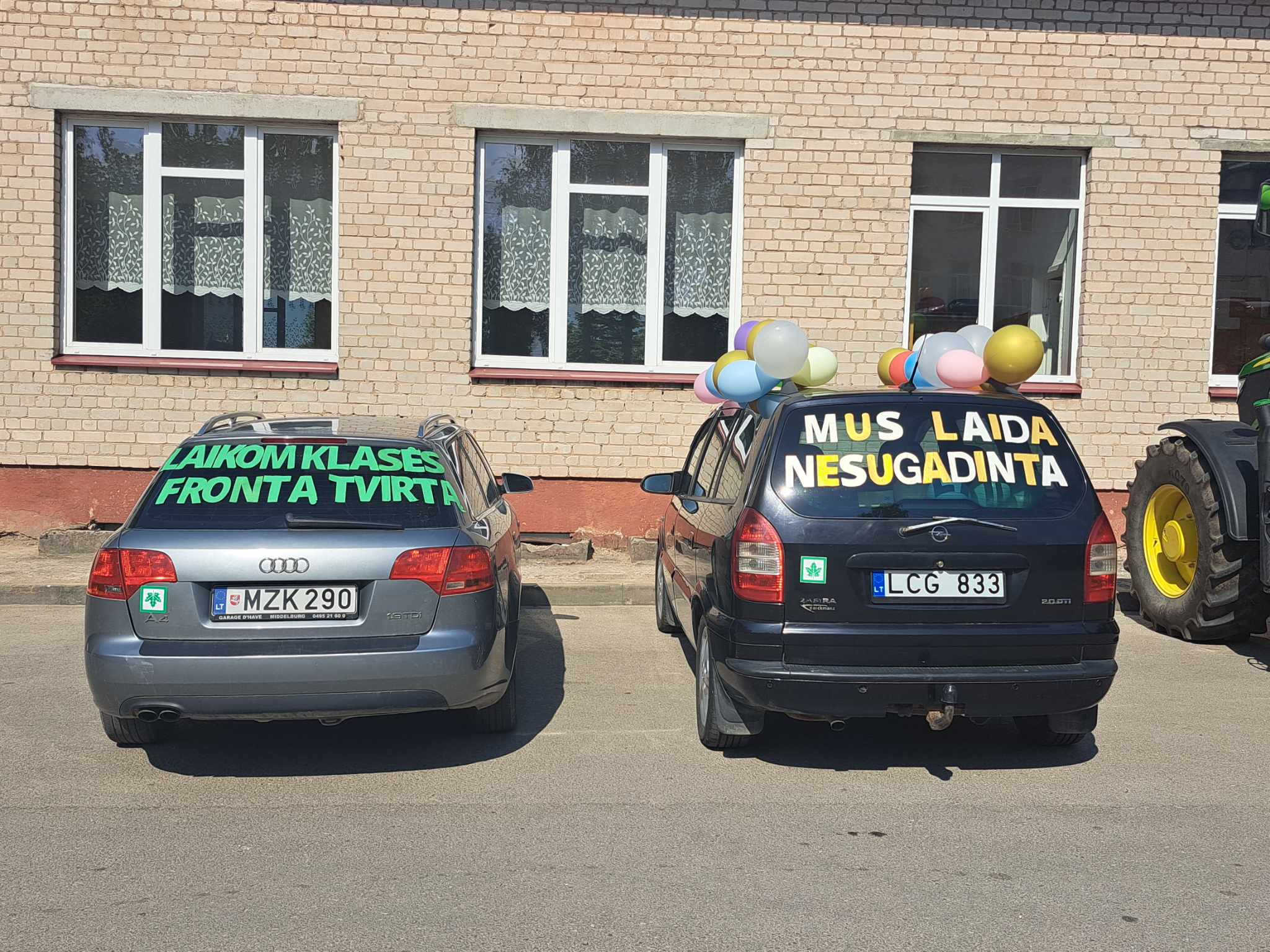 Kadangi kai kurių abiturientų tėveliai – ūkininkai, jie į Paskutinį skambutį atvairavo traktorius, papuoštus balionais bei ryškiais užrašais. Ant automobilių dvyliktokai išreiškė savo poziciją bei pademonstravo humoro jausmą: „Laikom klasės frontą tvirtą”, „Mūs laida nesugadinta”, „Klasė ši nesuvaidinta”. Žvelgiant į traktorius – dar linksmiau: „Chemijos prireiks tik prie purkštuvo”, „Iš pašalpos nepragyvensi”, „Socialinės sūnus”, „Jei kas, tėvas priims dirbti”…