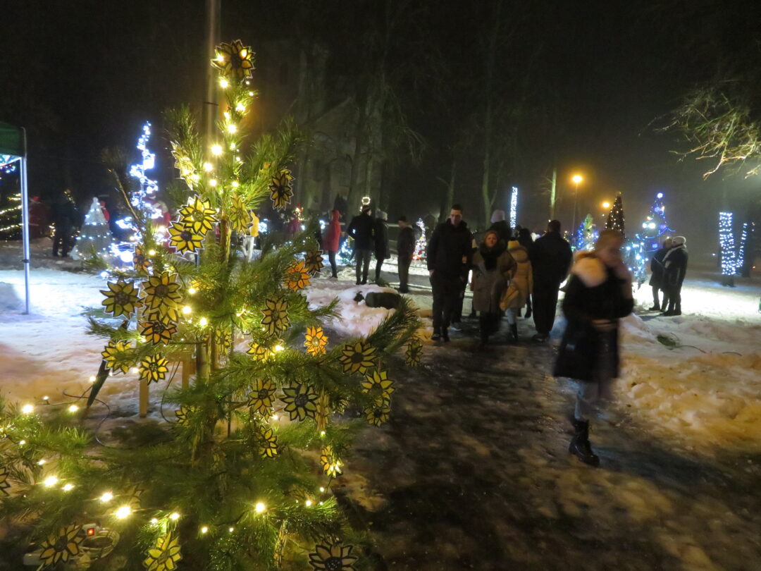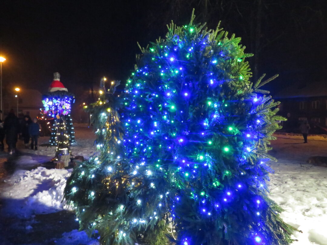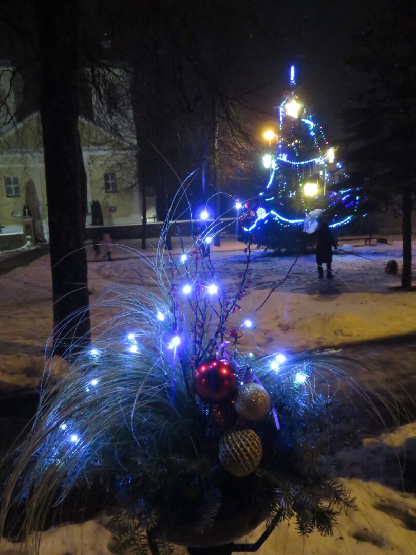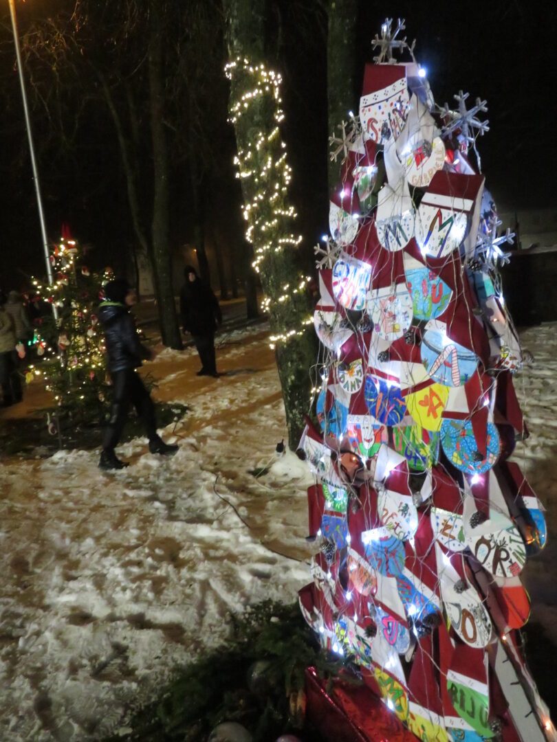 Įžiebti nebuvo paprasta, nes geriems, darbštiems nykštukams trukdė paniurėlis Girinis. Suminkštėjus jo širdžiai, šventinę eglutę pagrobė žaliaveidis Grinčas. Bet, kaip ir visose pasakose, taip ir čia viskas baigėsi taikiai ir alėją nutvieskė girliandų šviesos.